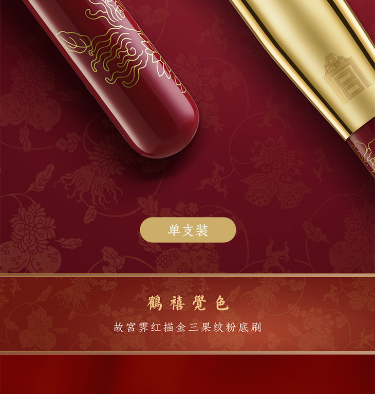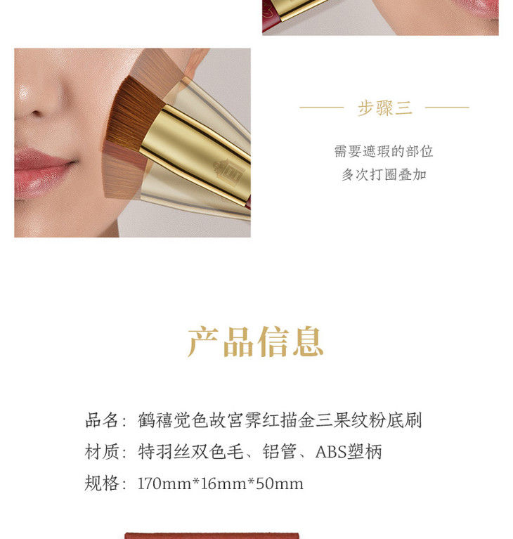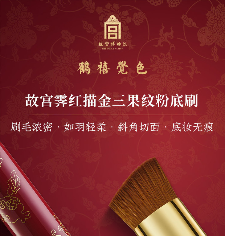 鹤禧觉色故宫霁红描金三果纹粉底刷(单支)