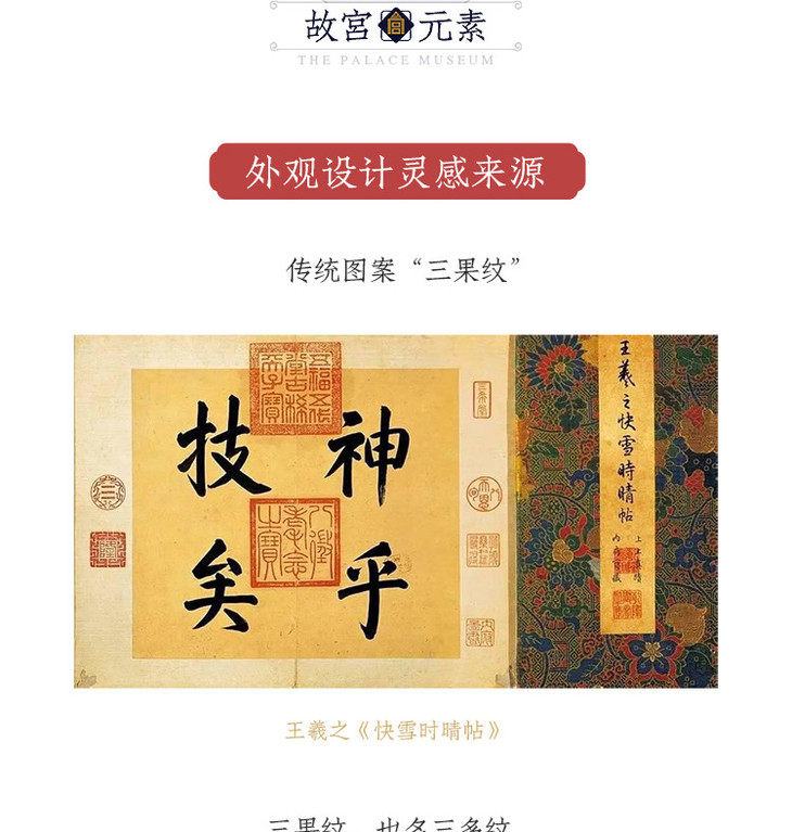 故宫博物院文化创意馆,包括丝绸馆、御窑馆、铜器馆、木艺馆、陶艺馆、综合馆、徽派传统工艺馆等主题馆组成。 每一件产品在提取故宫文物元素的基础上,结合传统美学和工艺制作而成。