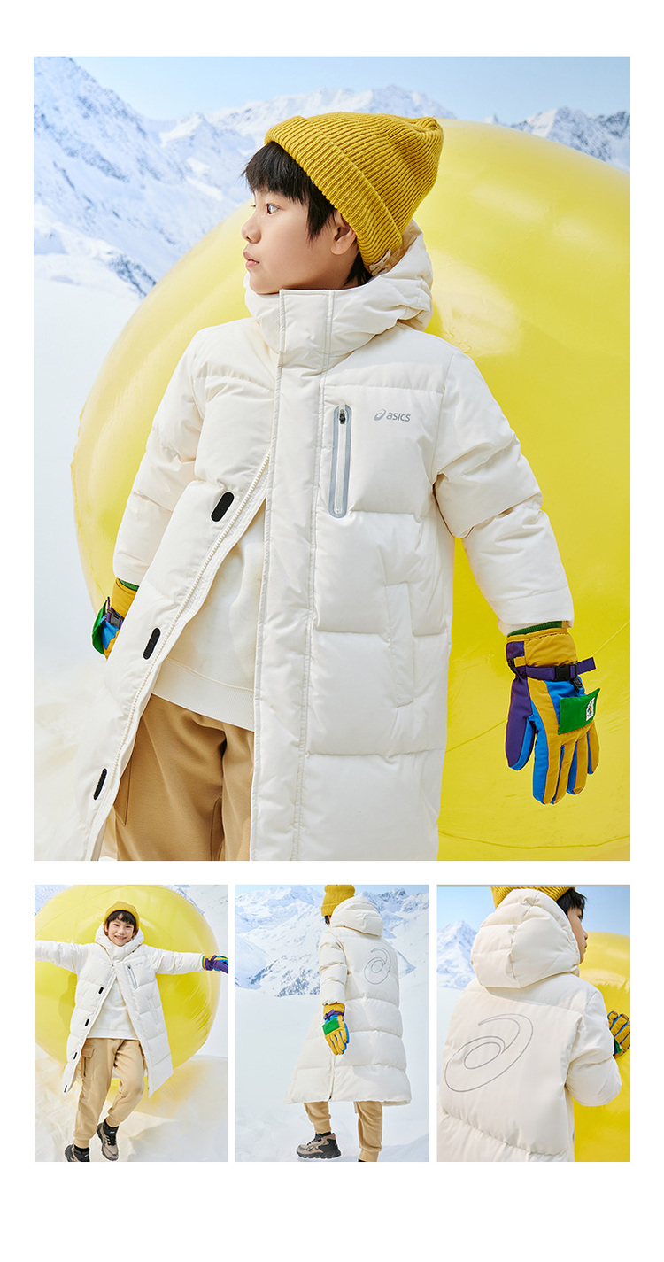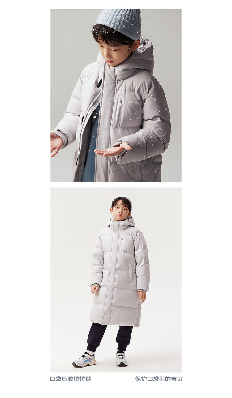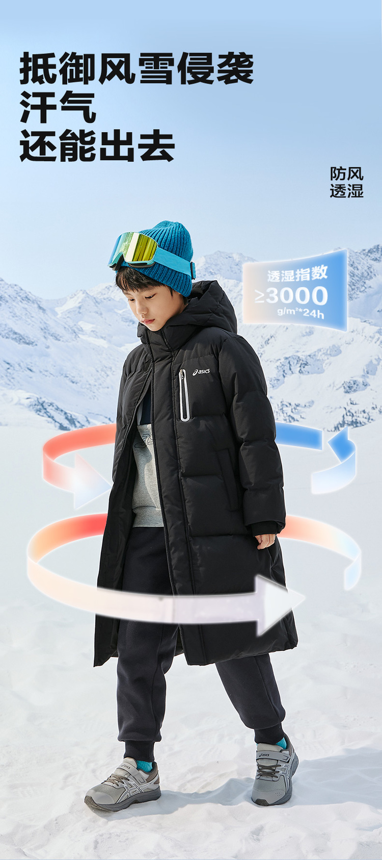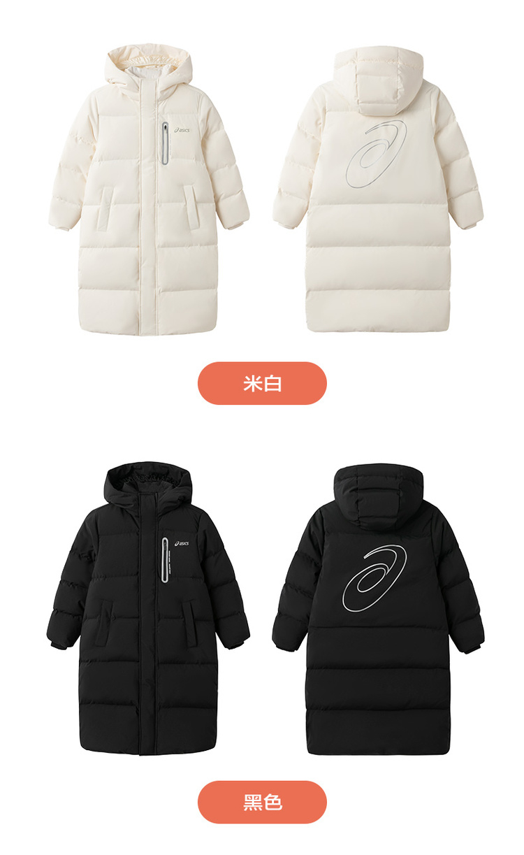 Asics/亚瑟士童装2024年冬季新款羽绒服长款保暖特氟龙三防外套厚