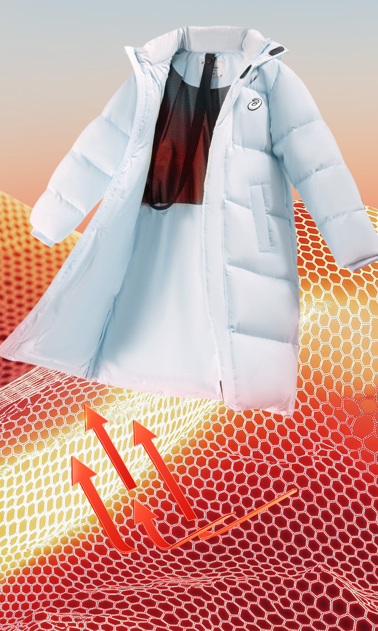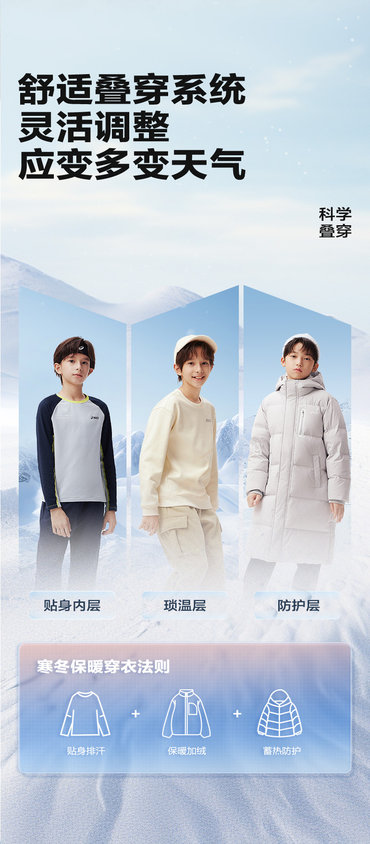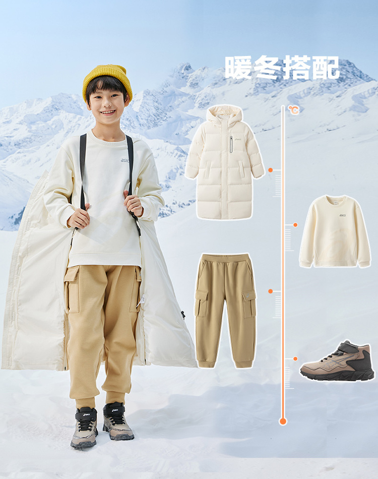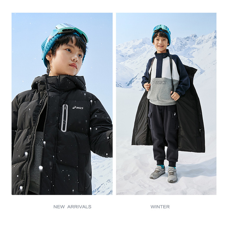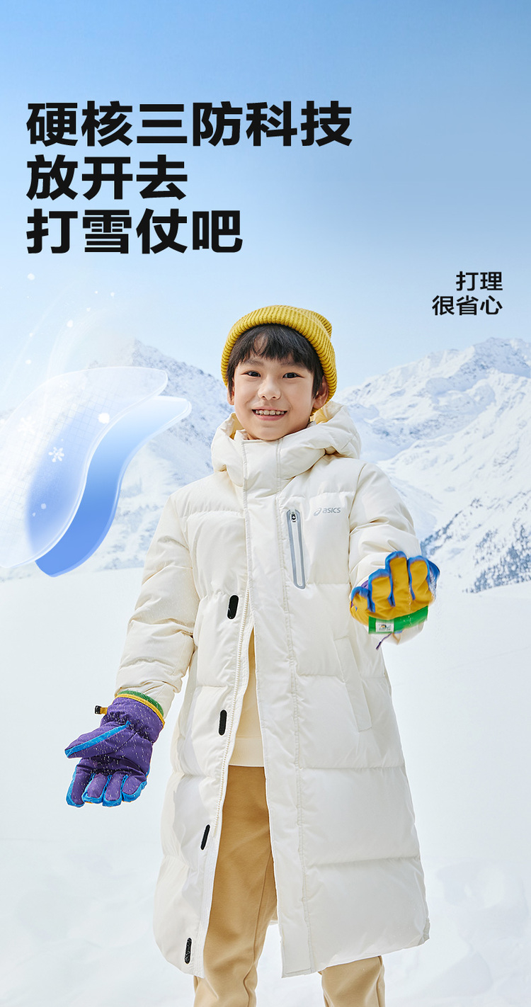 Asics/亚瑟士童装2024年冬季新款羽绒服长款保暖特氟龙三防外套厚