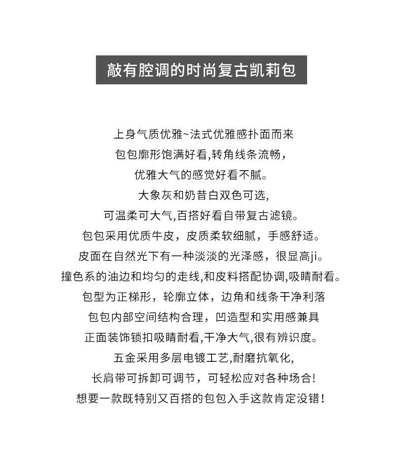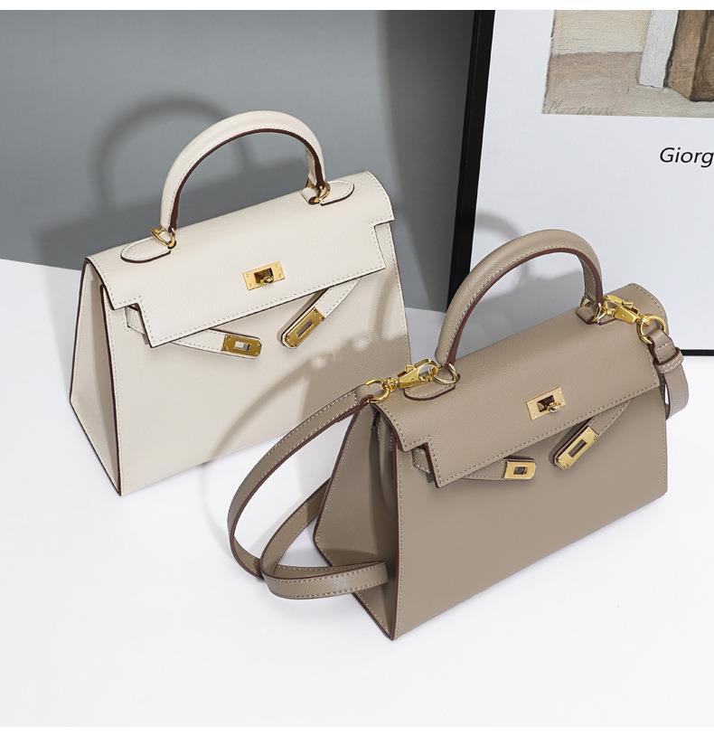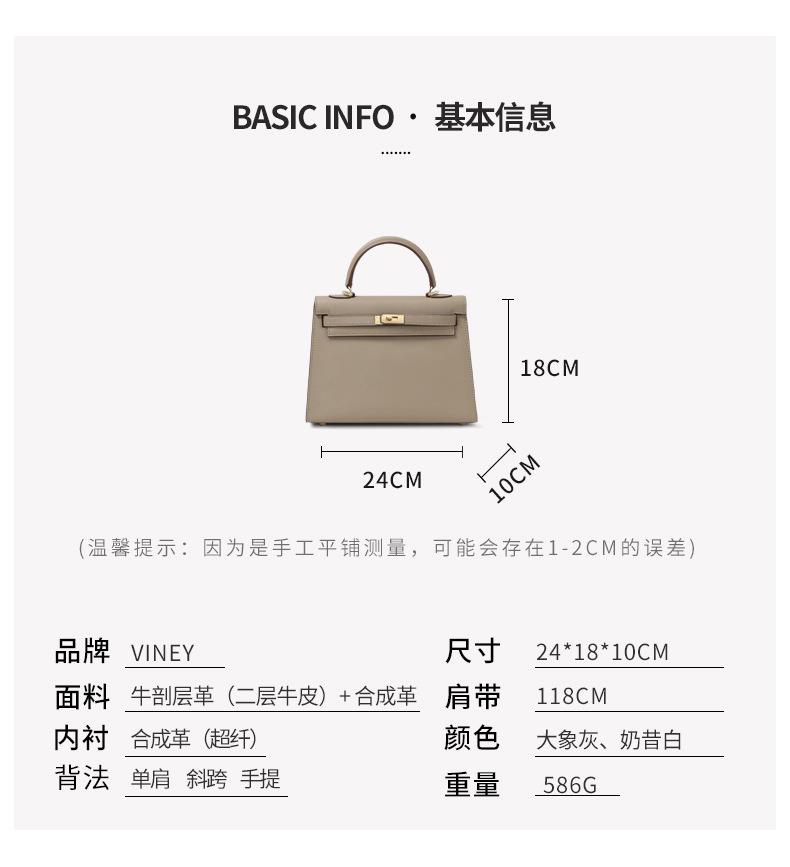 Viney包包2023新款时尚凯莉包斜挎包潮高级感手提单肩包真皮女包