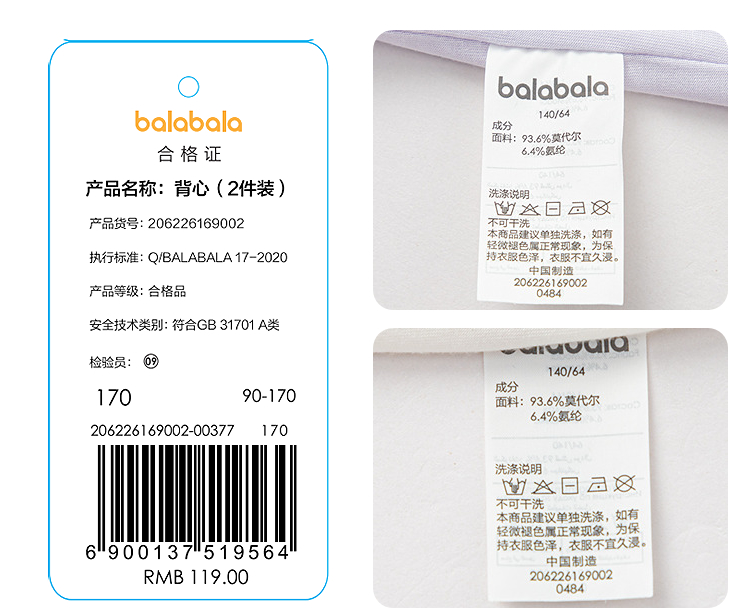 【商场同款】巴拉巴拉儿童背心夏季新款吊带女童打底衫无袖两件装