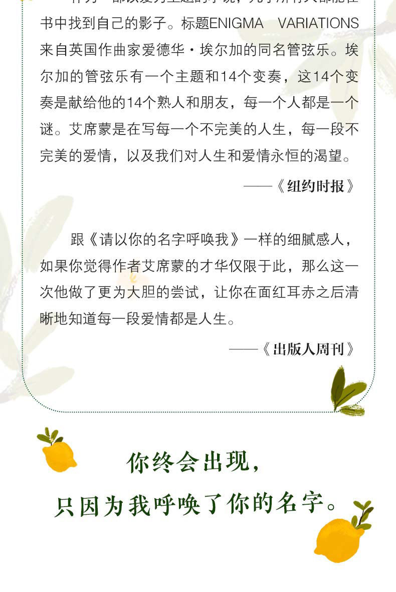 夏日终曲安德烈艾席蒙经典作品请以你的爱找寻我春日序曲冬日恋曲