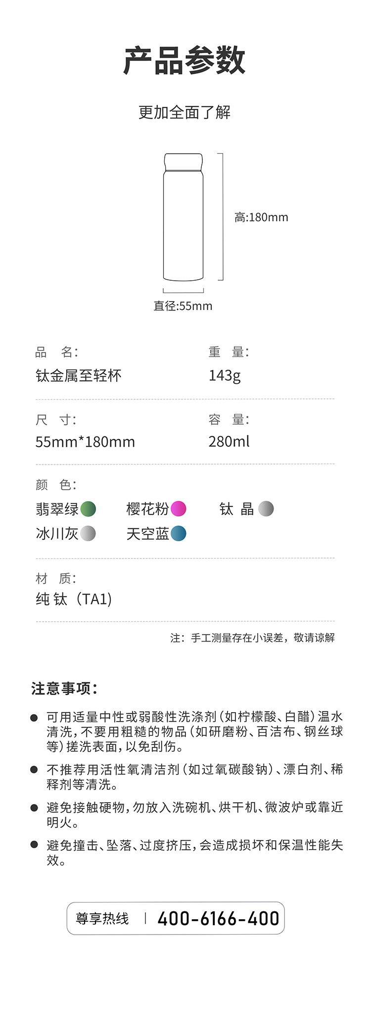 【时尚轻盈】PORSTI宝石太·钛金属至轻杯 轻松装进口袋小巧精致锁鲜保温杯气质非凡280ml