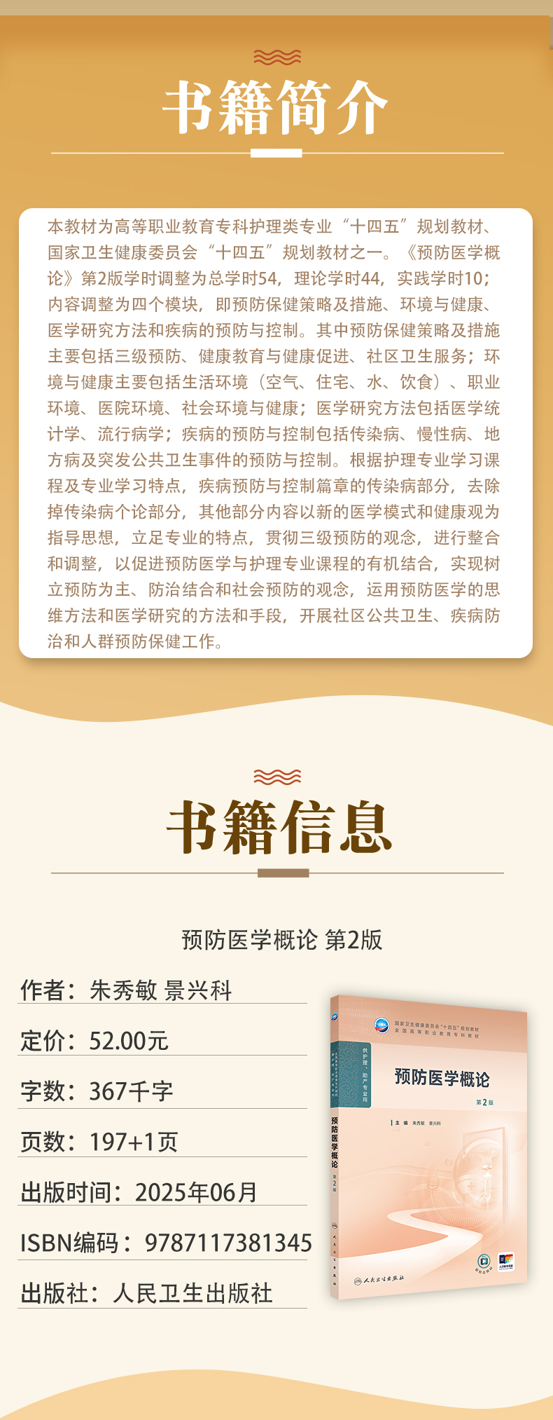 预防医学概论 第2二版 十四五规划教材 全国高等职业教育专科教材 朱秀敏 景兴科 供护理助产专业用 9787117381345人民卫生出版社
