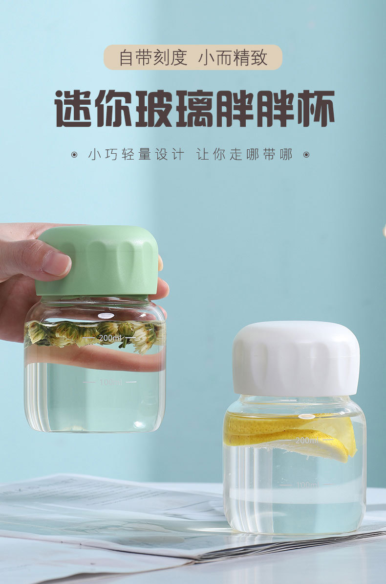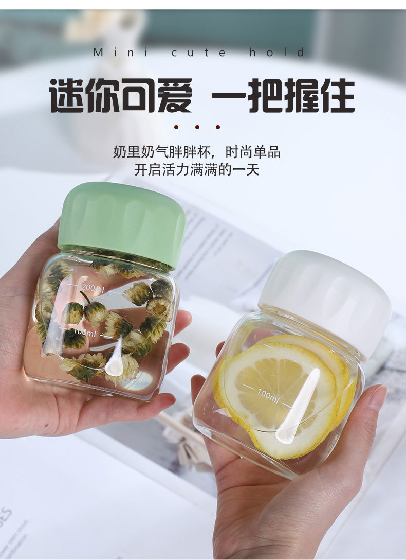 【敲高颜值!迷你玻璃胖胖杯】耐高温牛奶杯便携ins迷你玻璃水杯摇摇杯咖啡杯礼品,自带刻度 小巧便捷。ry