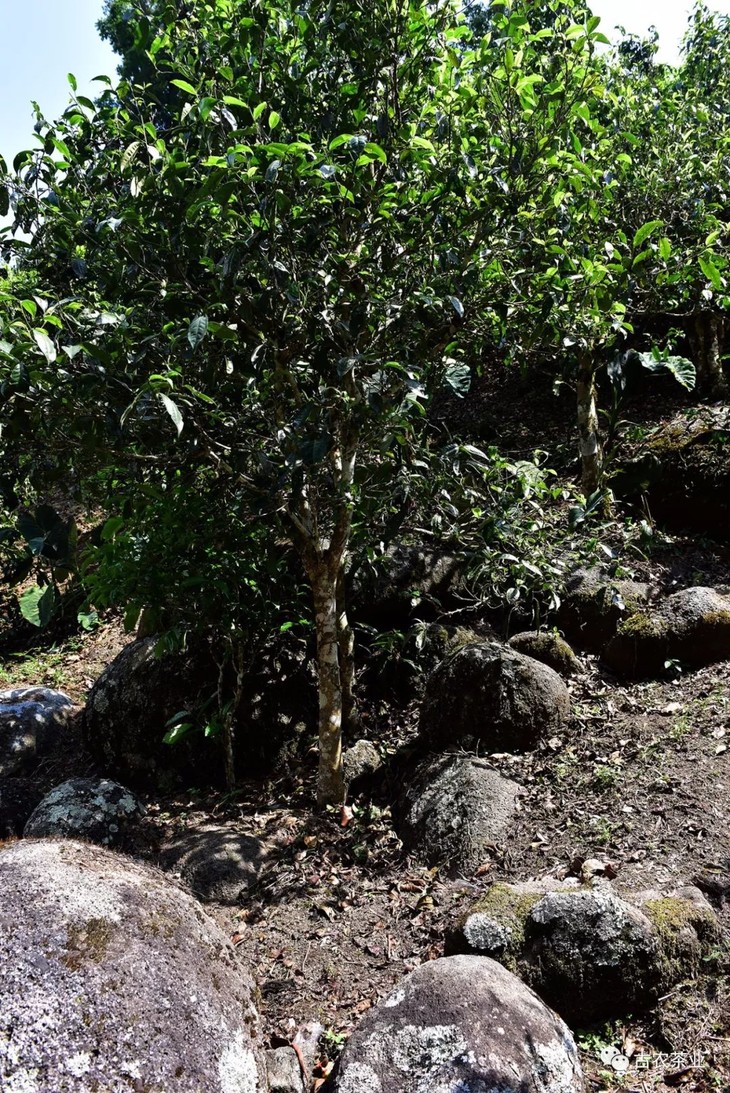该“老班章第一高杆古茶王”片区,四面青山环包,山涧溪流涓涓,阳坡面光照充足,植被保存更为完好,形成特殊的小盆地立体综合气候环境,古茶树树姿高大强壮,长势茂盛,树龄极老,高大的古茶树与岩石混生共长,茶品味道更佳,滋味更好,韵味更甚,气感最为强烈。