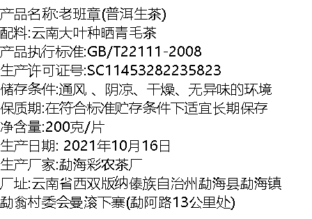彩农茶|老班章2021秋古树纯料青饼