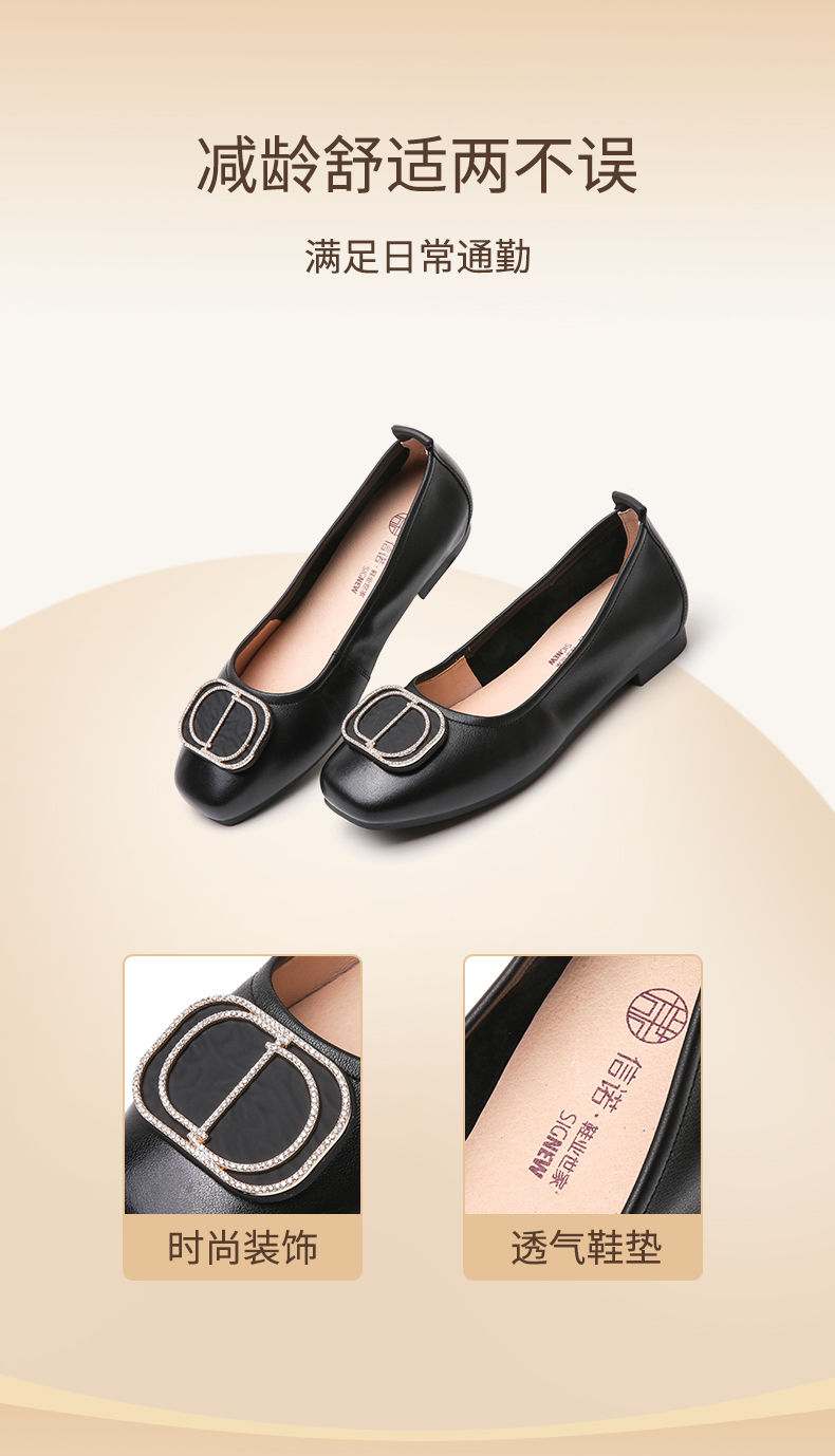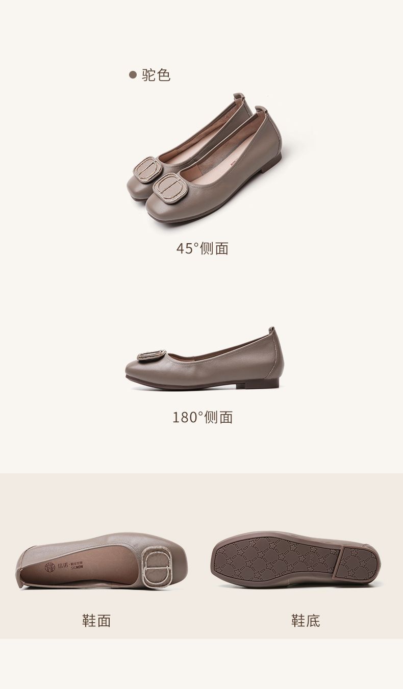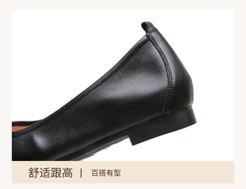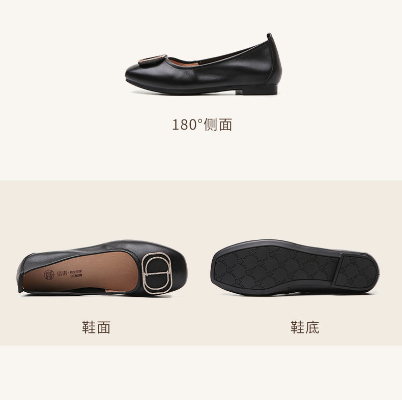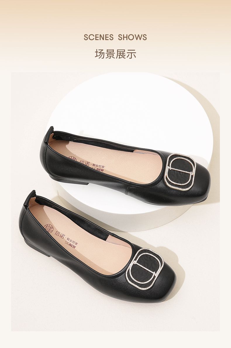 信诺真皮单鞋女2023秋新款平底浅口软底瓢鞋中年妈妈鞋舒适豆豆鞋23Q1629-13