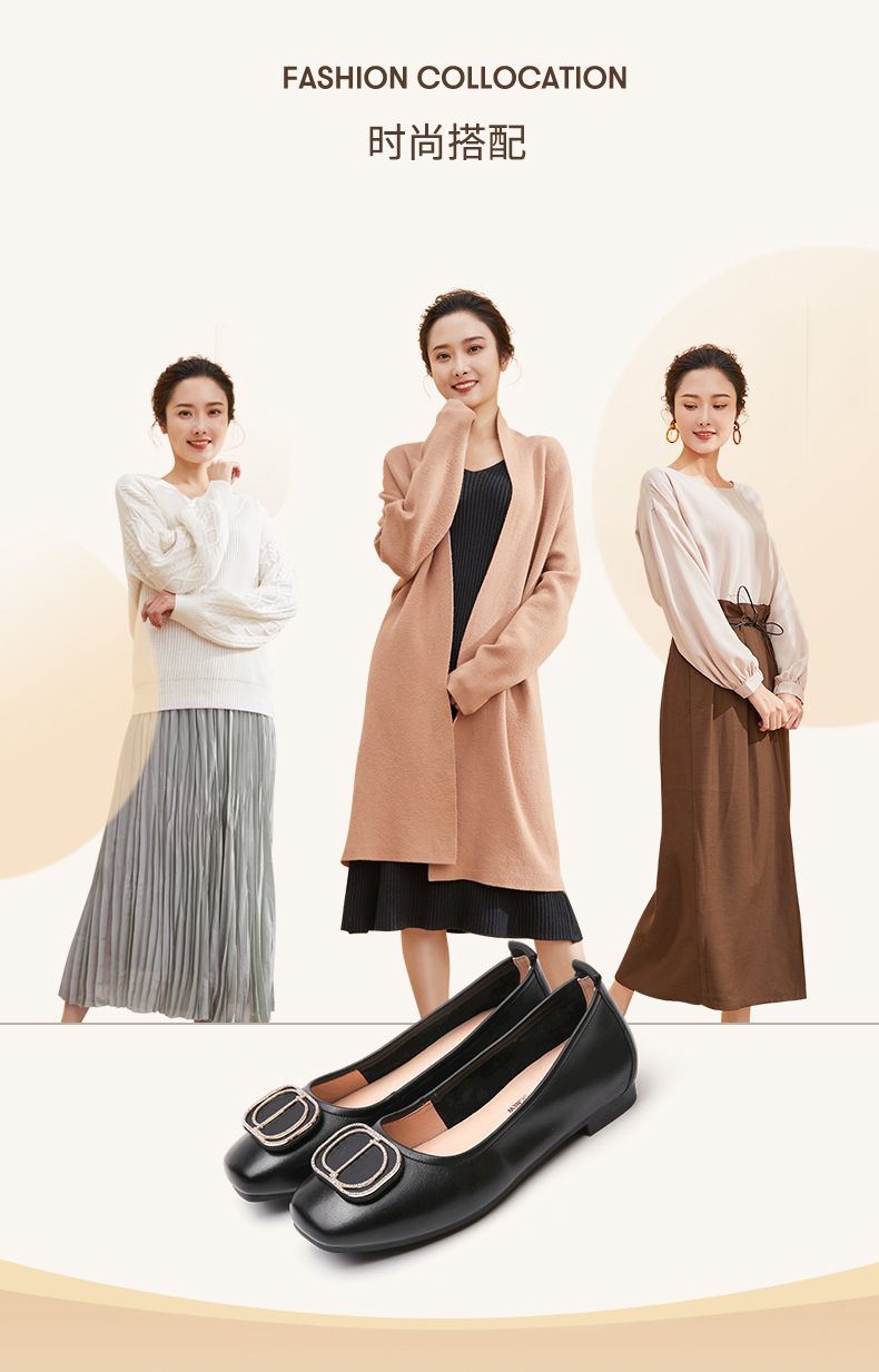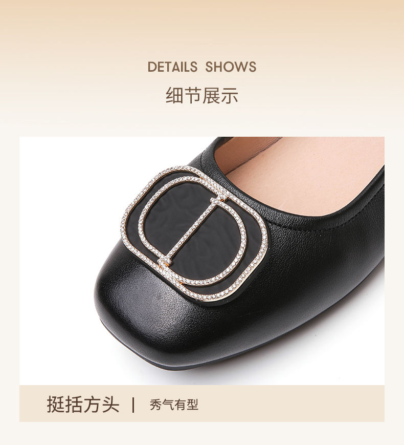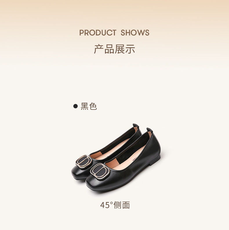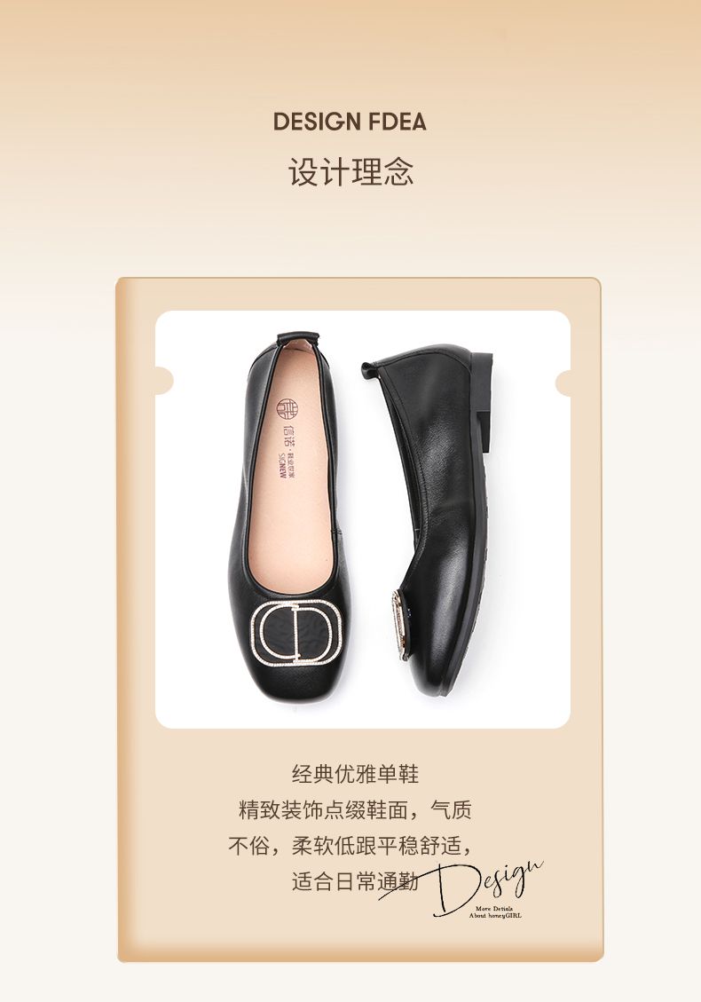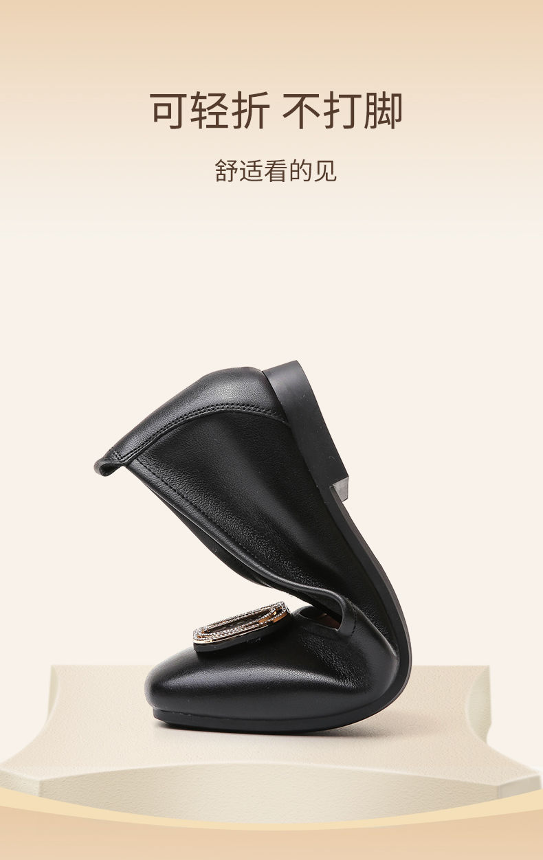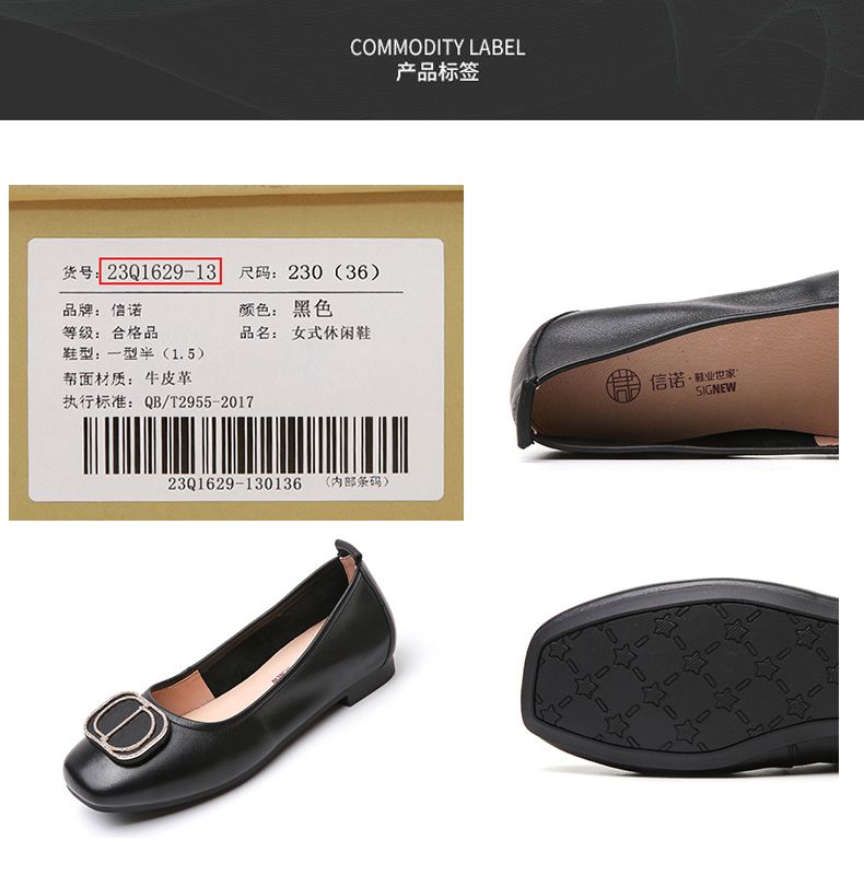 信诺真皮单鞋女2023秋新款平底浅口软底瓢鞋中年妈妈鞋舒适豆豆鞋23Q1629-13