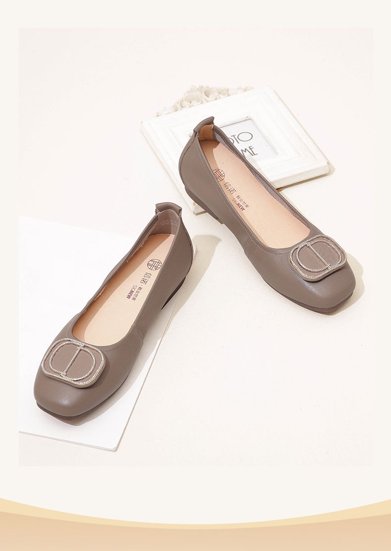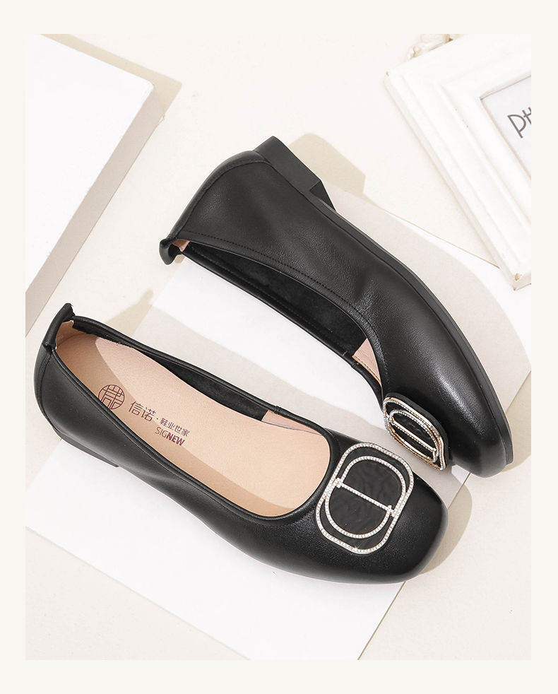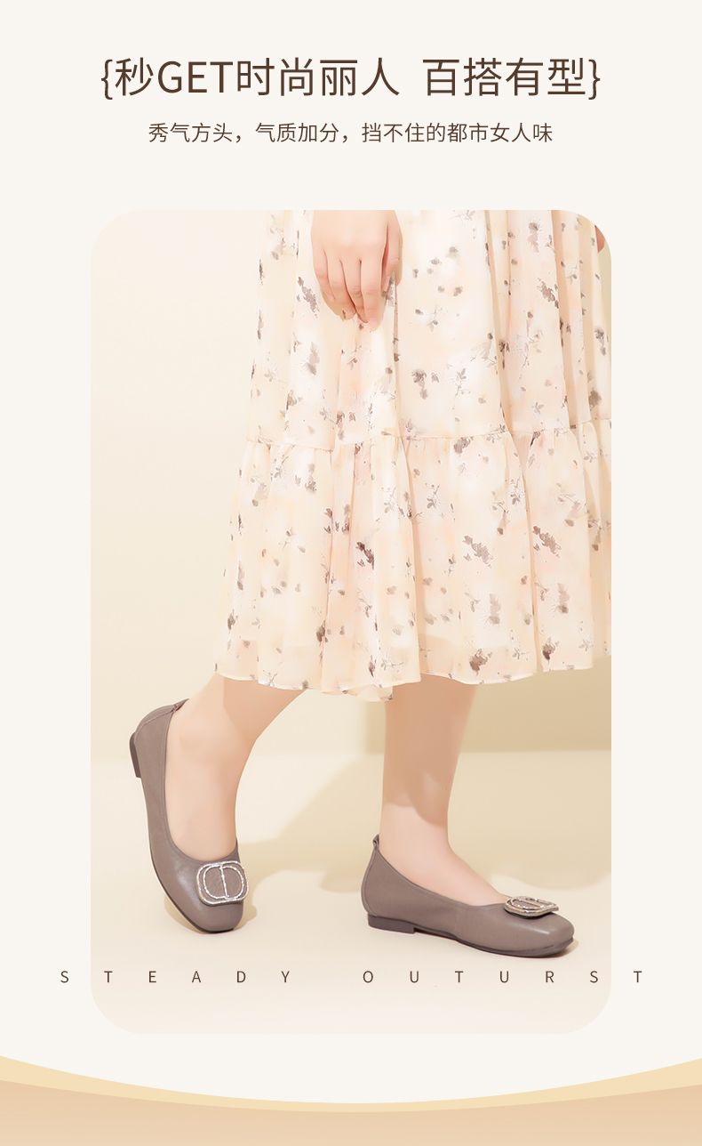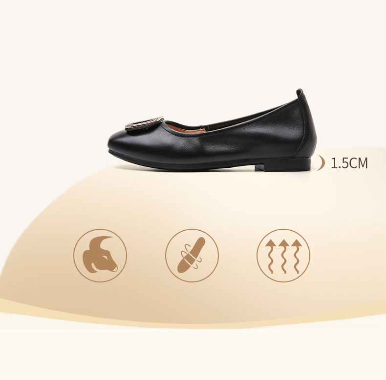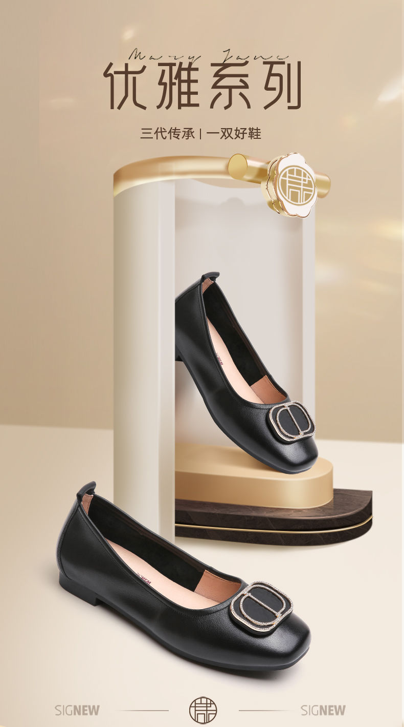 信诺真皮单鞋女2023秋新款平底浅口软底瓢鞋中年妈妈鞋舒适豆豆鞋23Q1629-13