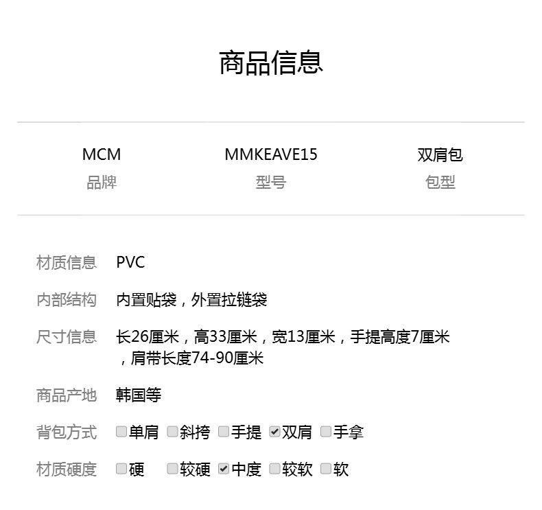 MCM 专柜款 男士小号双肩包MMKEAVE15CO001