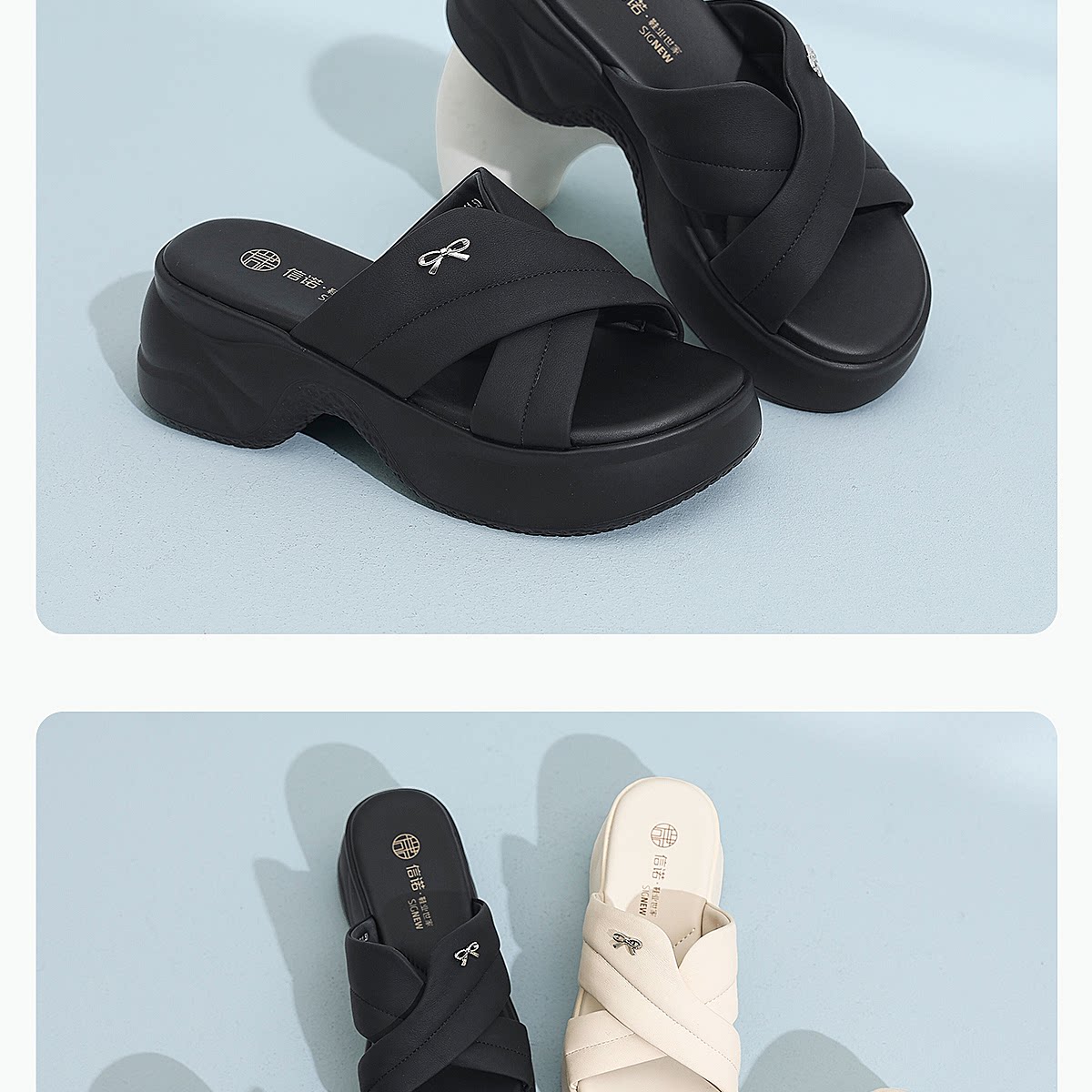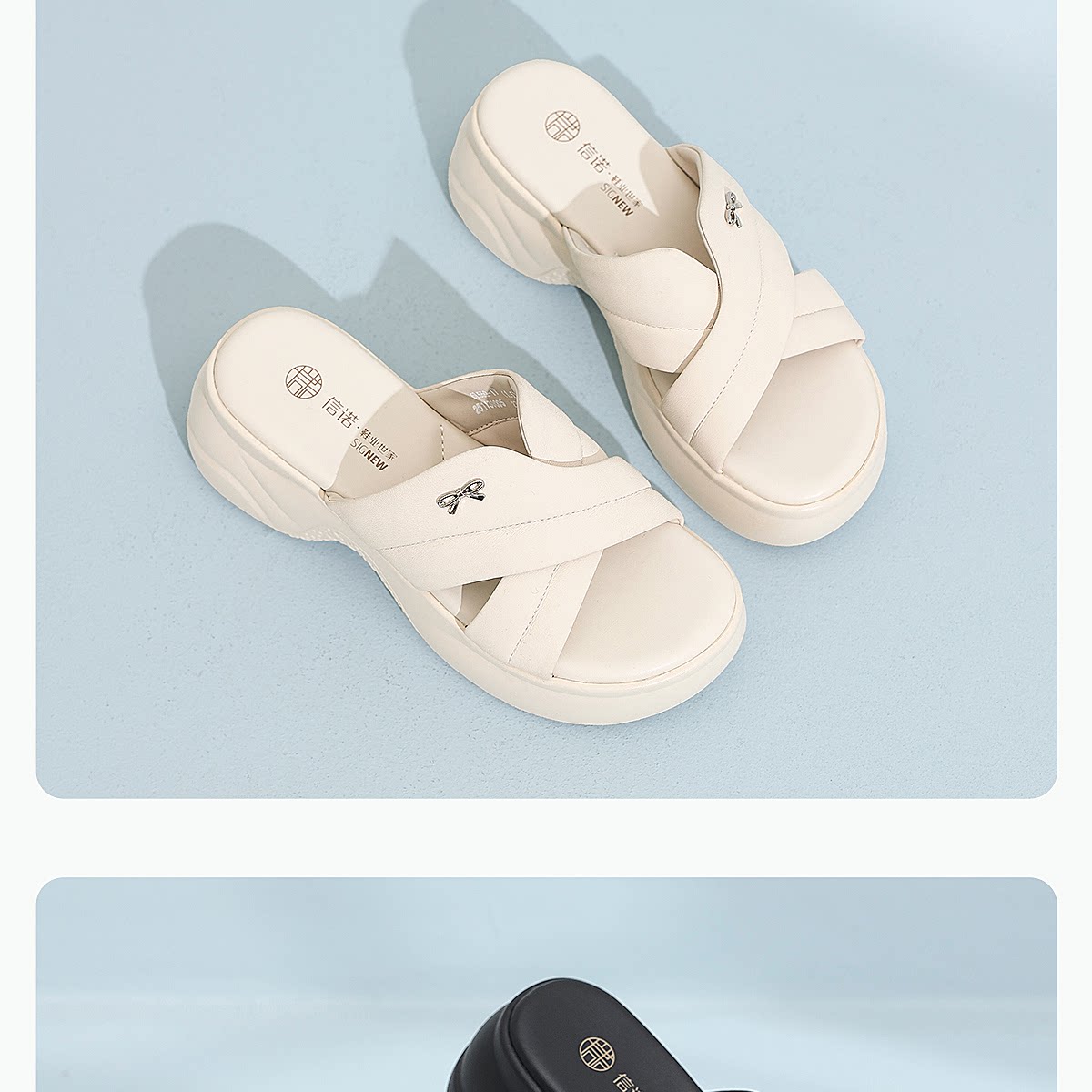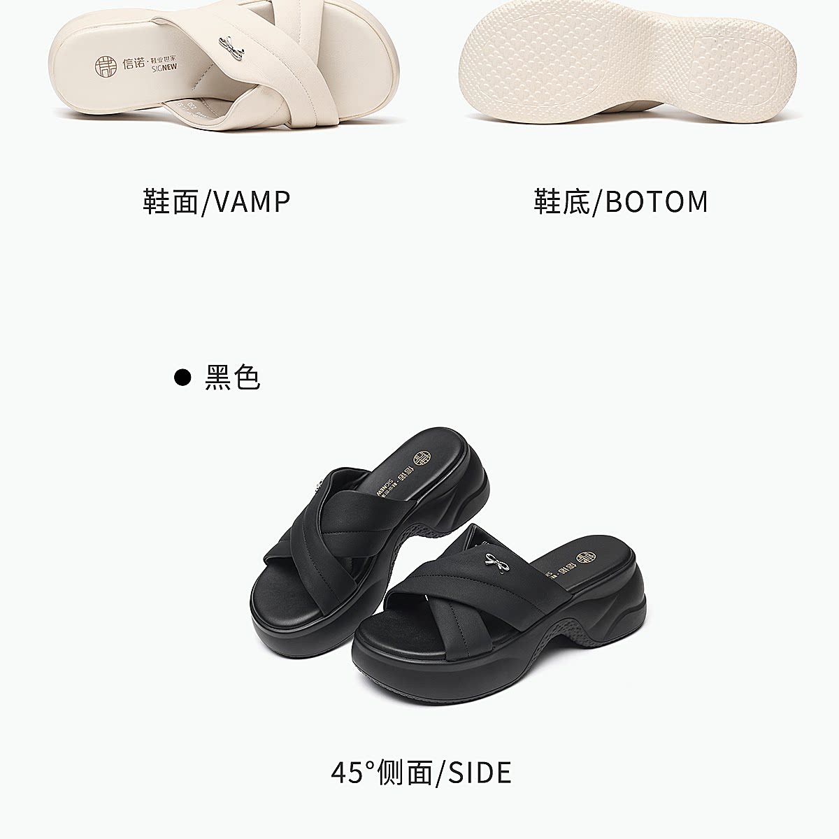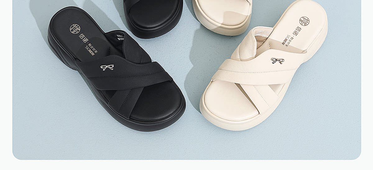 信诺妈妈鞋黑色厚底一字拖女外穿时尚百搭软底凉拖鞋2026夏季新款6L559-1T