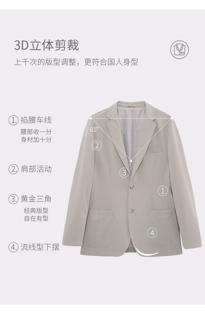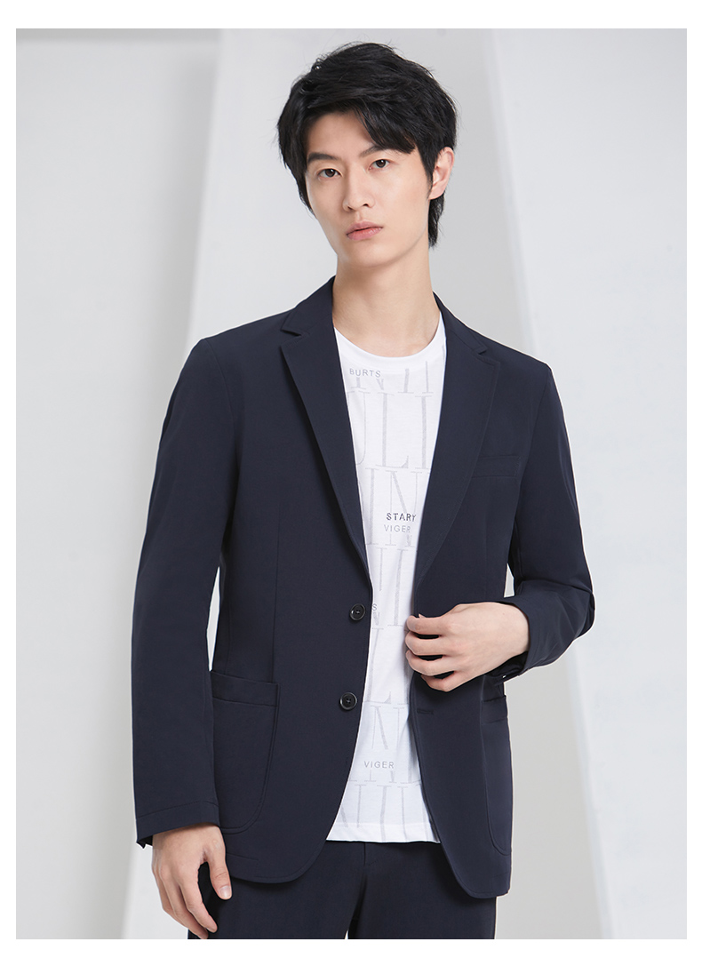 圣得西男士弹力轻薄休闲单西外套新款时尚平驳领西服外套2212927001