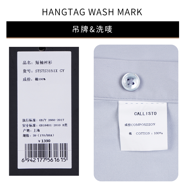 callisto灰色纯棉短袖衬衫 STSTS3151X