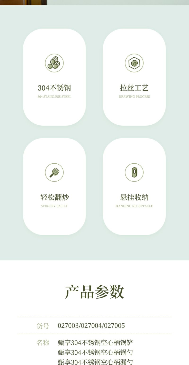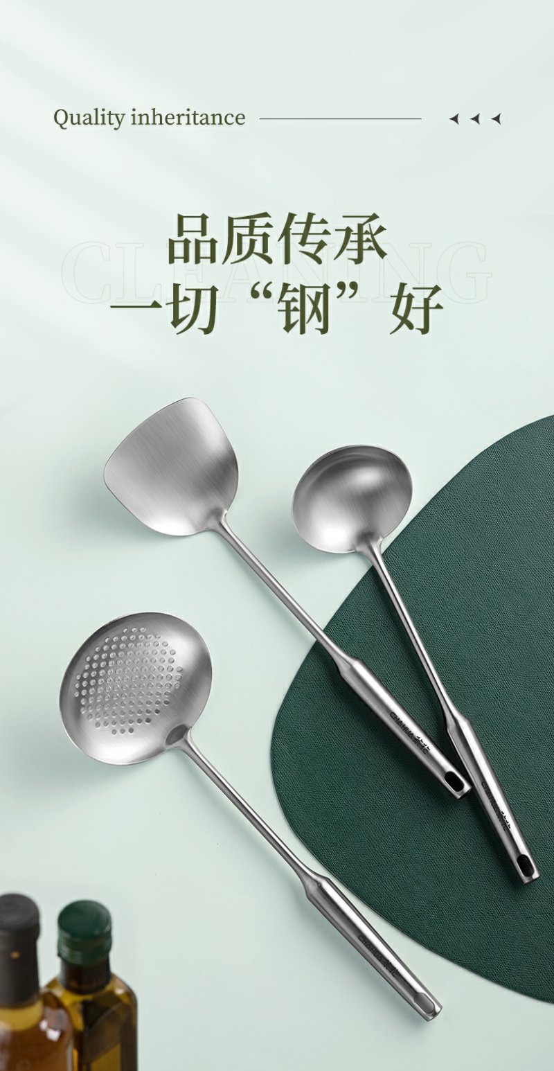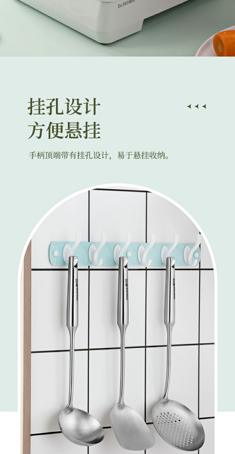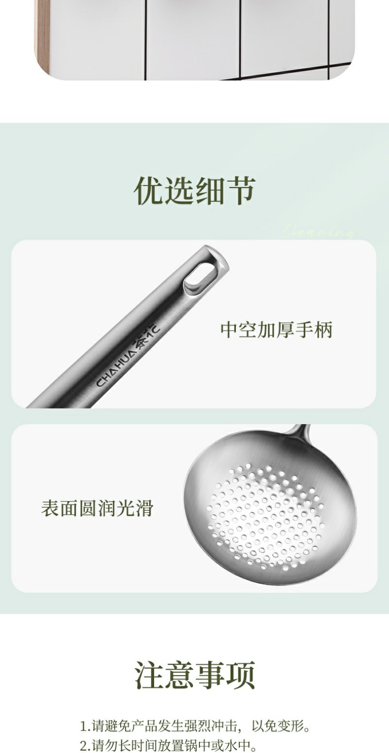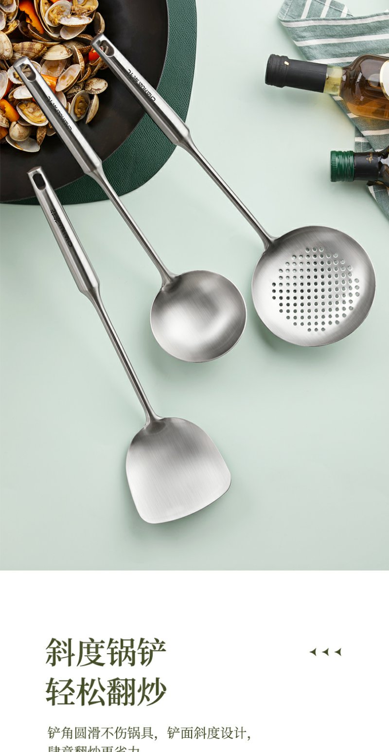 【茶花】食品级304不锈钢空心柄锅铲锅勺漏勺