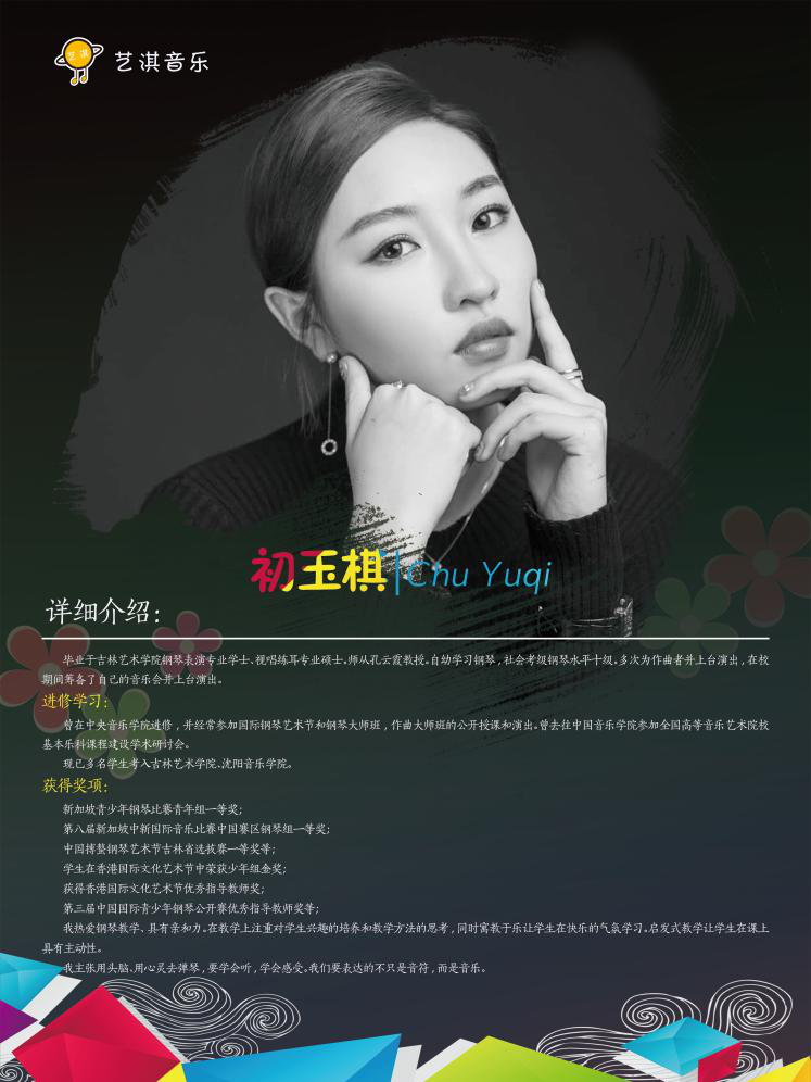 艺淇音乐是由一批优秀吉林省外在校教师,研究生团队组成的音乐教育,授课教师均为东北师范大学,吉林艺术学院硕士生。