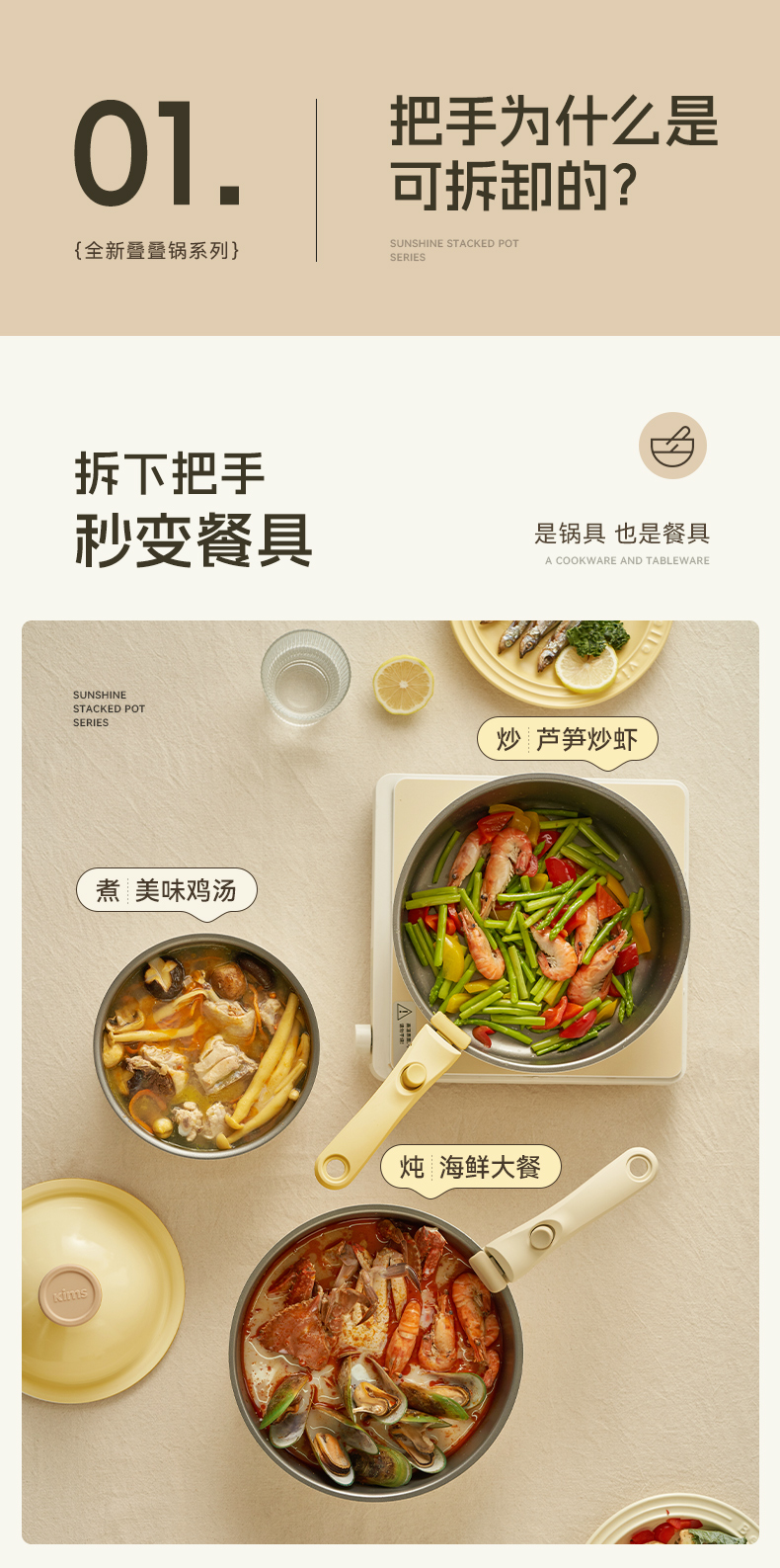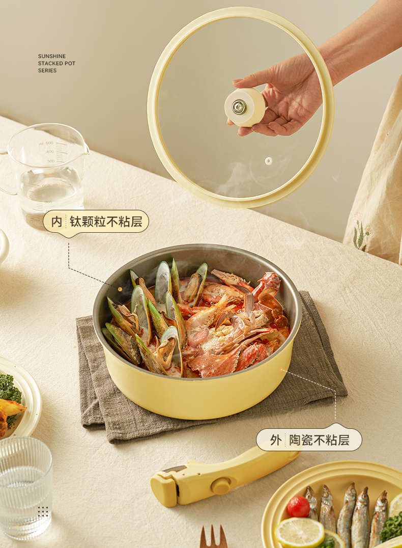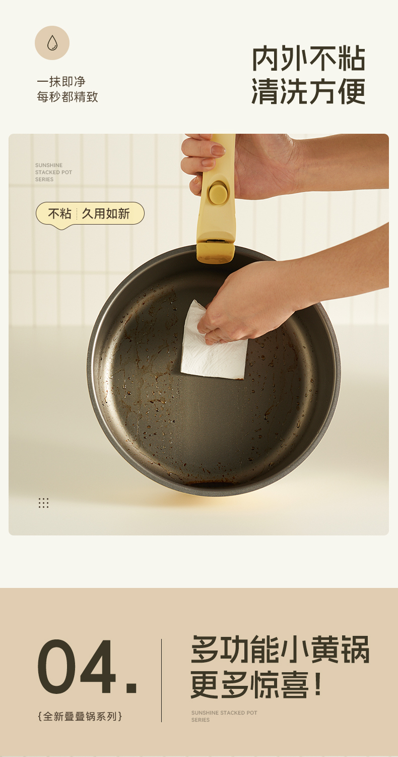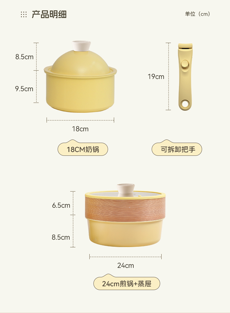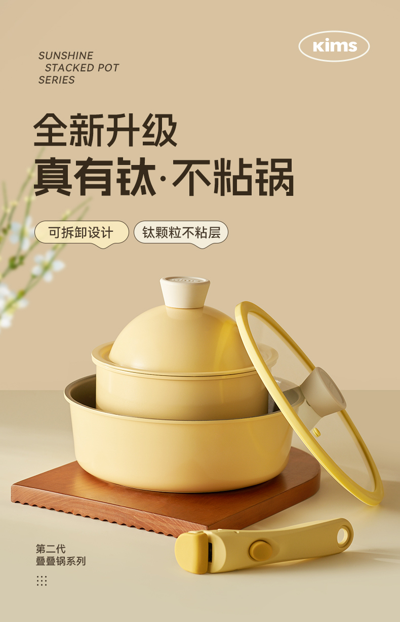 KIMS COOK 二代一米阳光奶锅可拆卸宝宝抗菌辅食锅泡面锅不粘锅套装