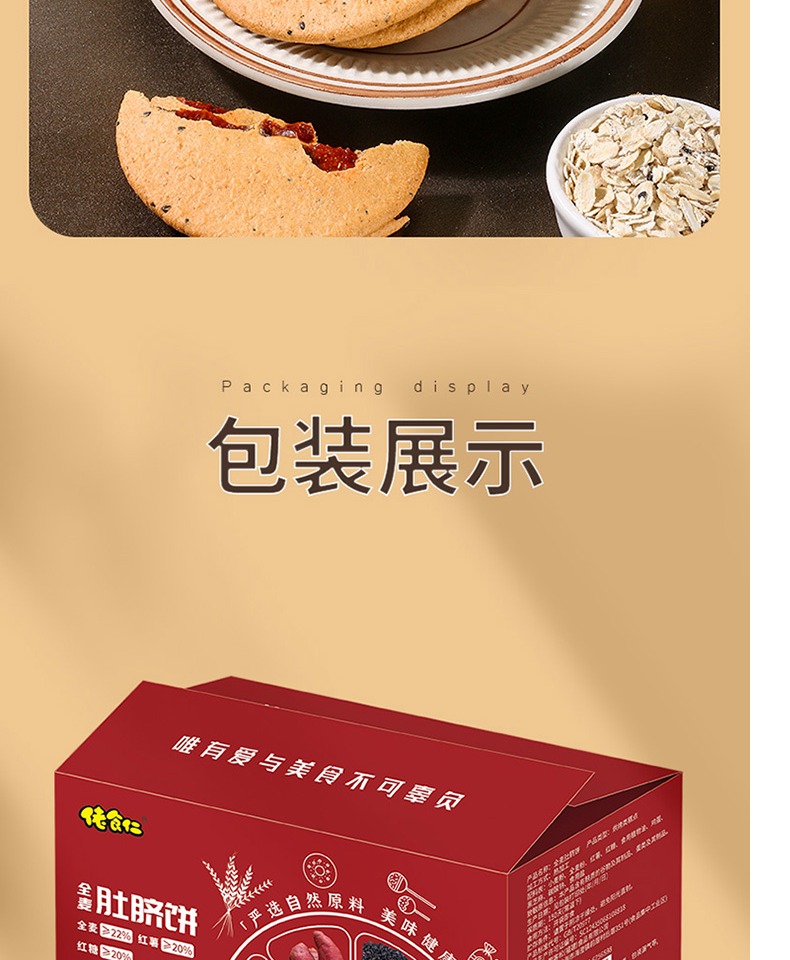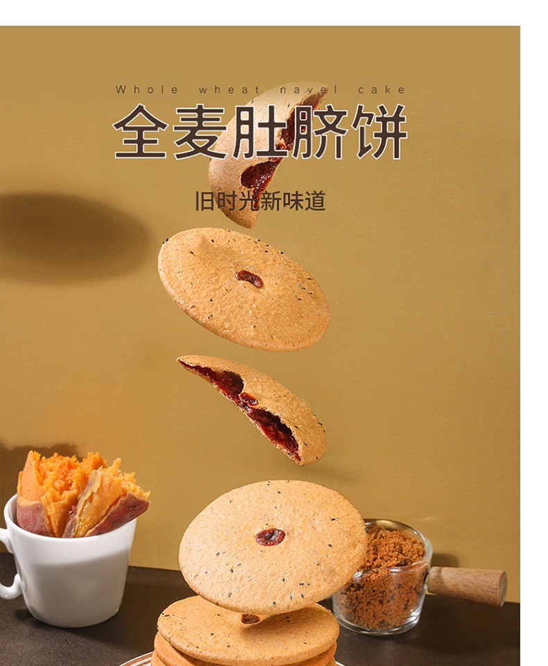 佬食仁全麦红糖肚脐饼整箱潮汕特产小吃零食盒装粗粮煎饼健康食品