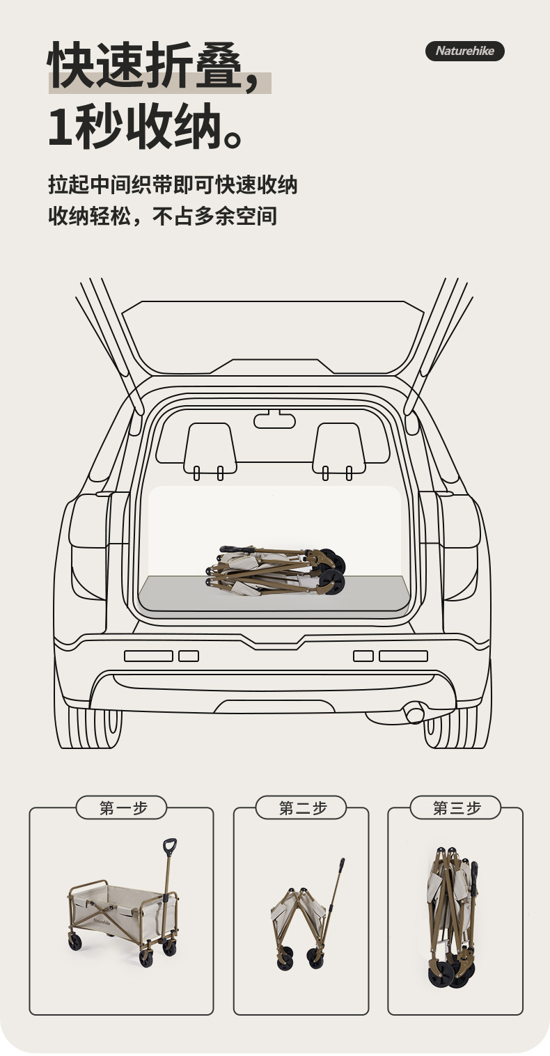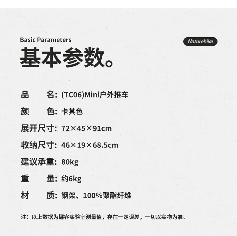 挪客(Naturehike)户外露营车营地折叠手推车摆摊野营TC06 Mini户外推车