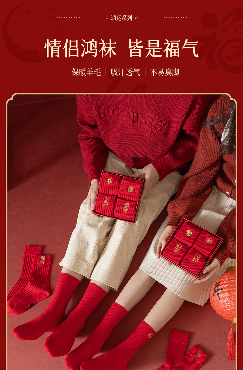 【抗寒保暖羊绒袜】刺绣龙年羊毛袜4双礼盒装 大红袜子本命年羊绒中筒袜 情侣福袜 商品缩略图0 【抗寒保暖羊绒袜】刺绣龙年羊毛袜4双礼盒装 大红袜子本命年羊绒中筒袜 情侣福袜 商品缩略图1 【抗寒保暖羊绒袜】刺绣龙年羊毛袜4双礼盒装 大红袜子本命年羊绒中筒袜 情侣福袜 商品缩略图2 【抗寒保暖羊绒袜】刺绣龙年羊毛袜4双礼盒装 大红袜子本命年羊绒中筒袜 情侣福袜 商品缩略图3 【抗寒保暖羊绒袜】刺绣龙年羊毛袜4双礼盒装 大红袜子本命年羊绒中筒袜 情侣福袜 商品缩略图4