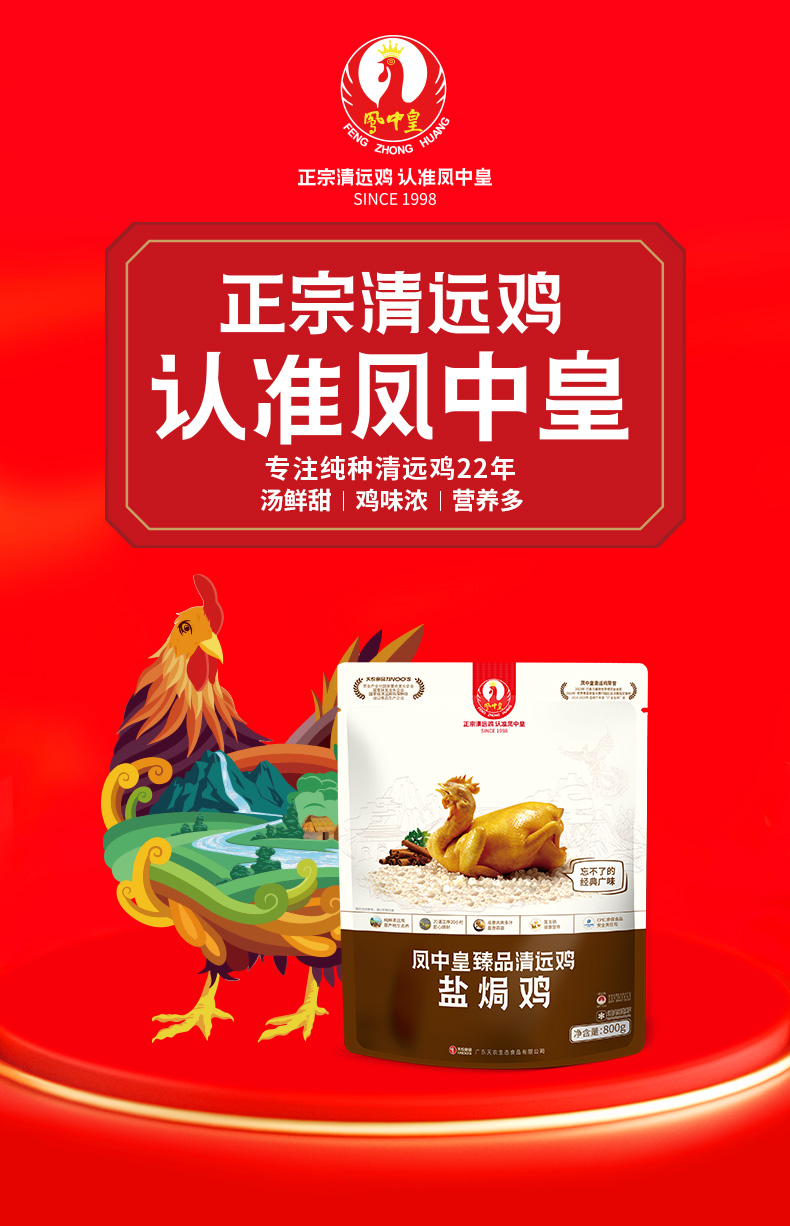 【礼盒】凤中皇清远鸡盐焗鸡土鸡农家散养整只熟食手撕鸡广府味 800g