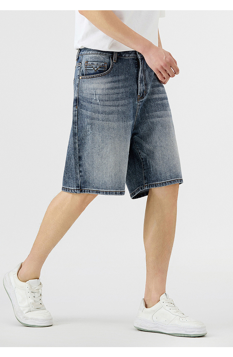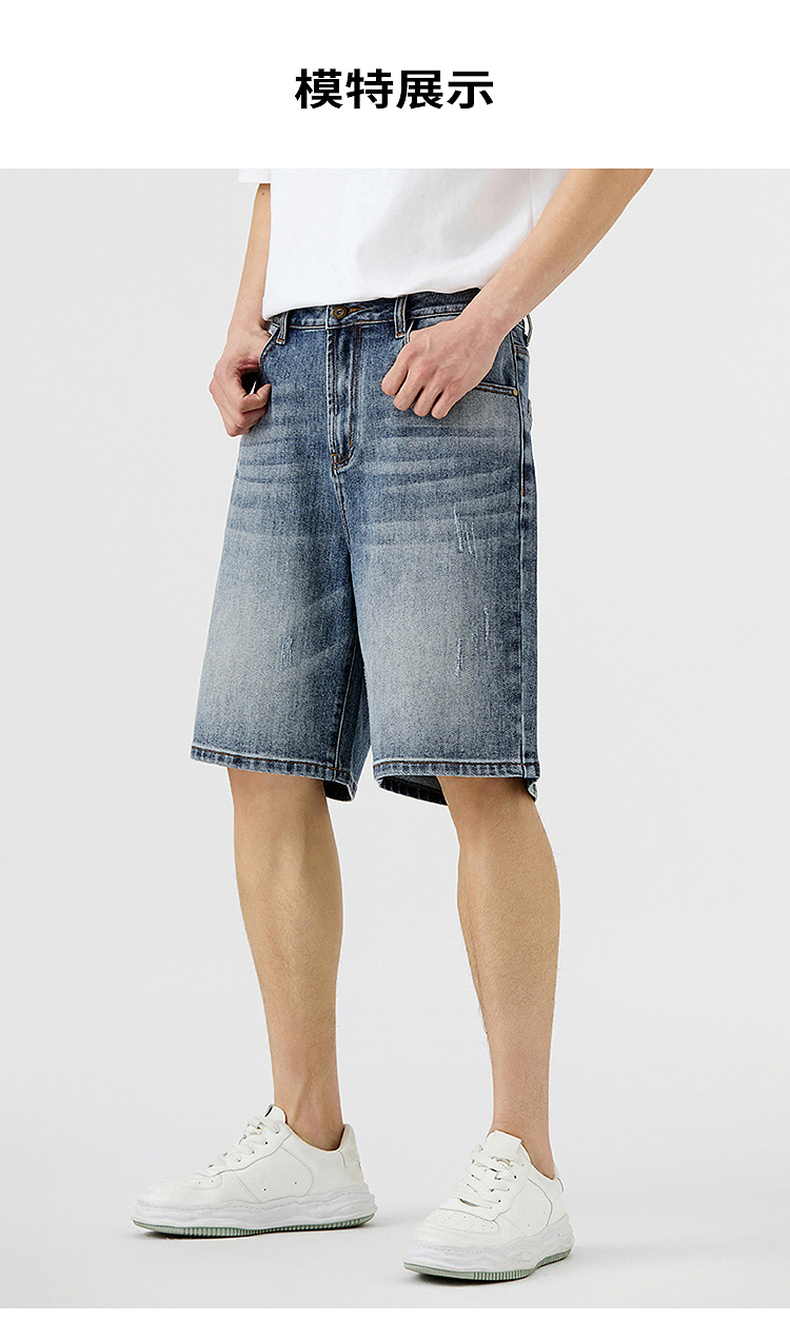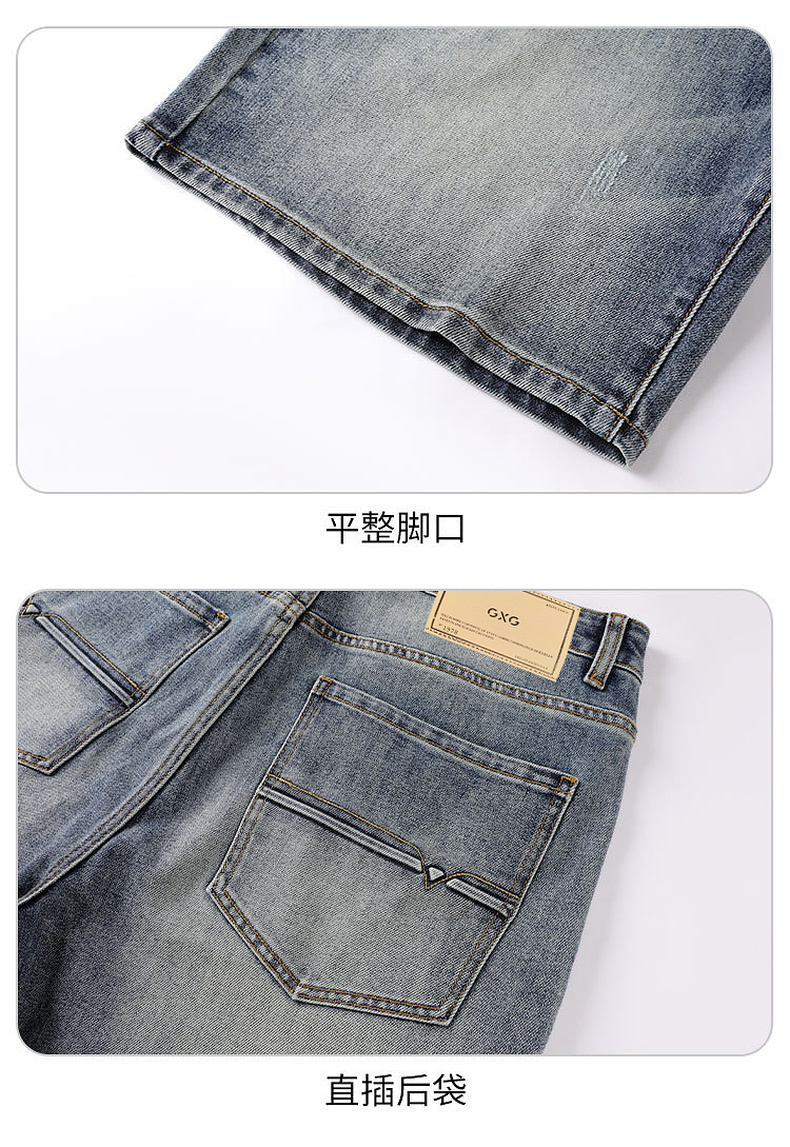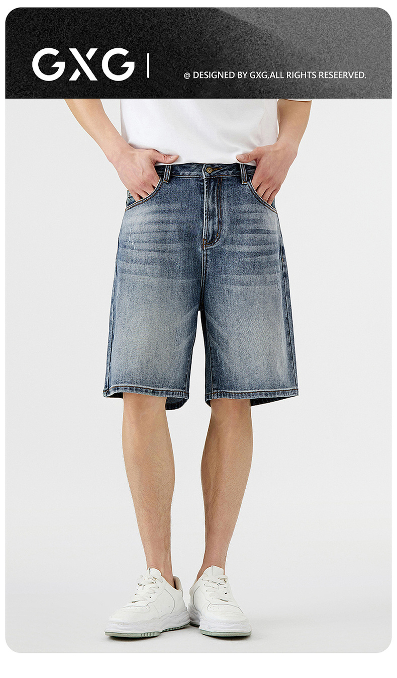 GXG男装25夏季时尚猫须休闲百搭薄款直筒男式牛仔五分短裤K&C