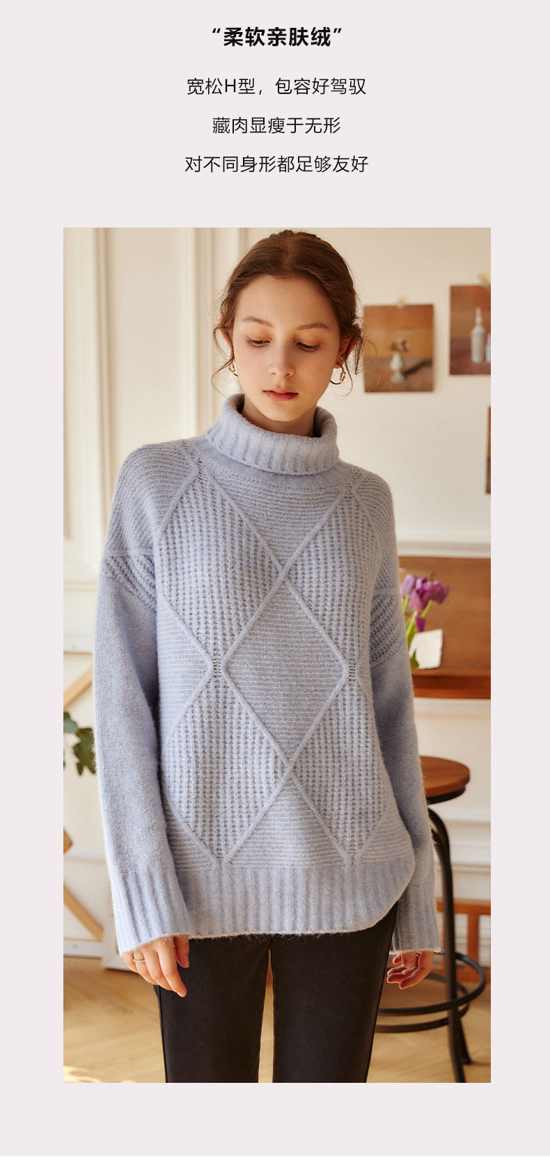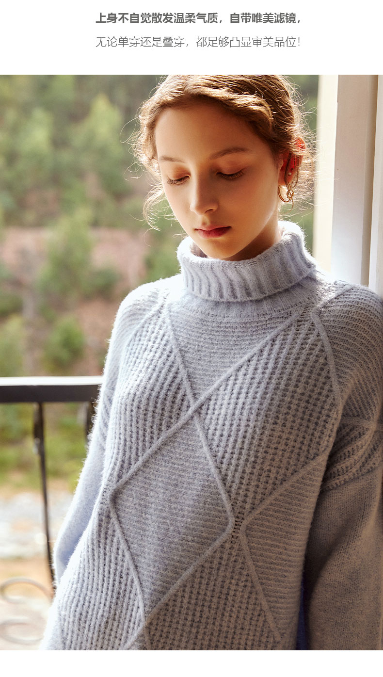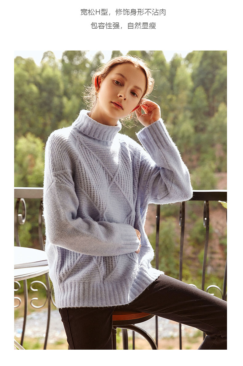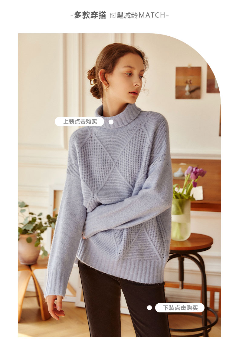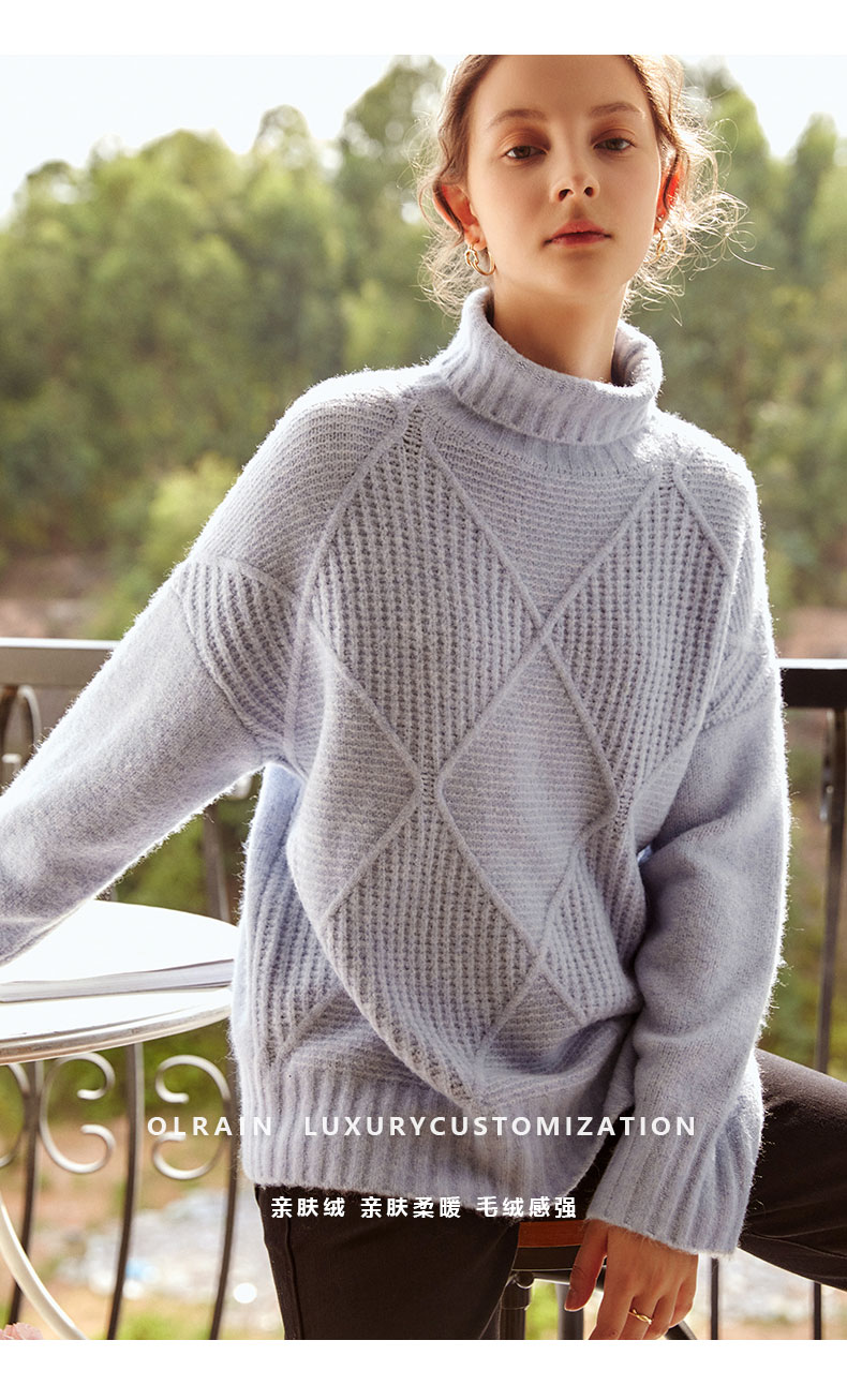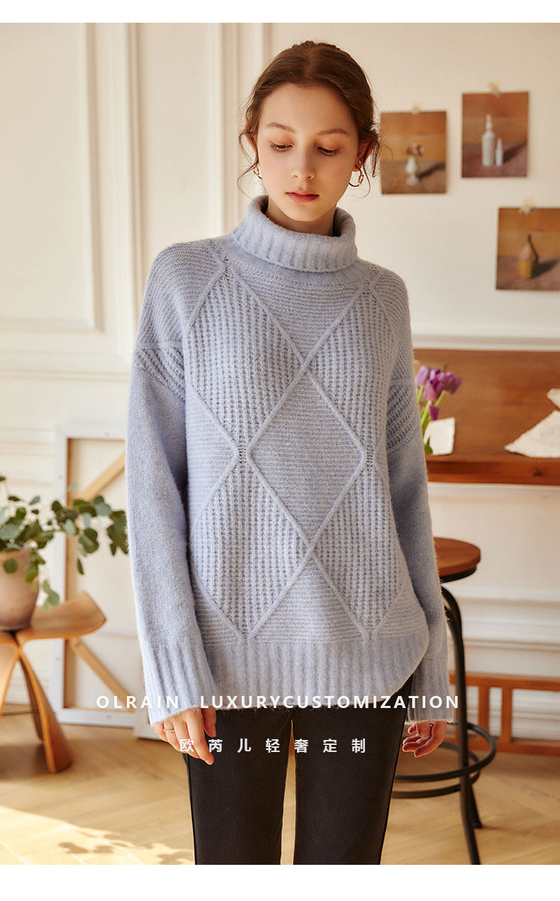 欧芮儿高领套头毛衣女春装新款2025宽松显瘦慵懒时尚洋气纯色上衣