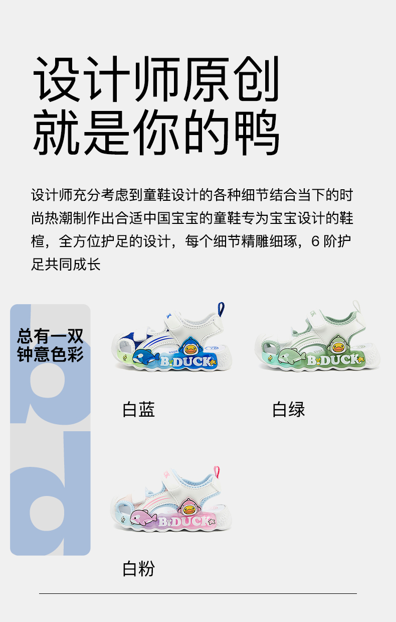 B.Duck小黄鸭童鞋夏季儿童凉鞋灯鞋24-30 B2585018