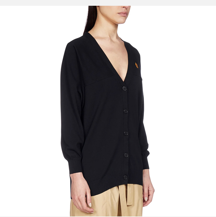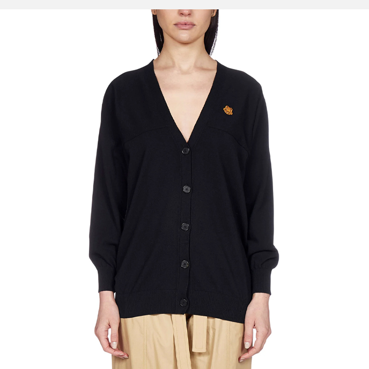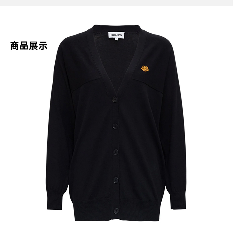 KENZO 高田贤三 女士小虎头徽标贴花棉质长袖针织衫 黑色 FB52 CA581 3TB 99