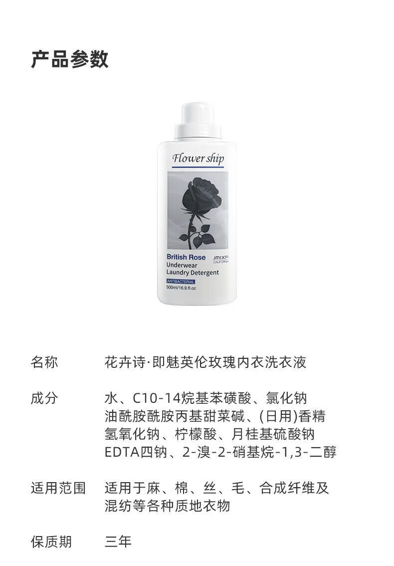 【分仓直发包邮】花卉诗即魅英伦玫瑰内衣洗衣液500ml