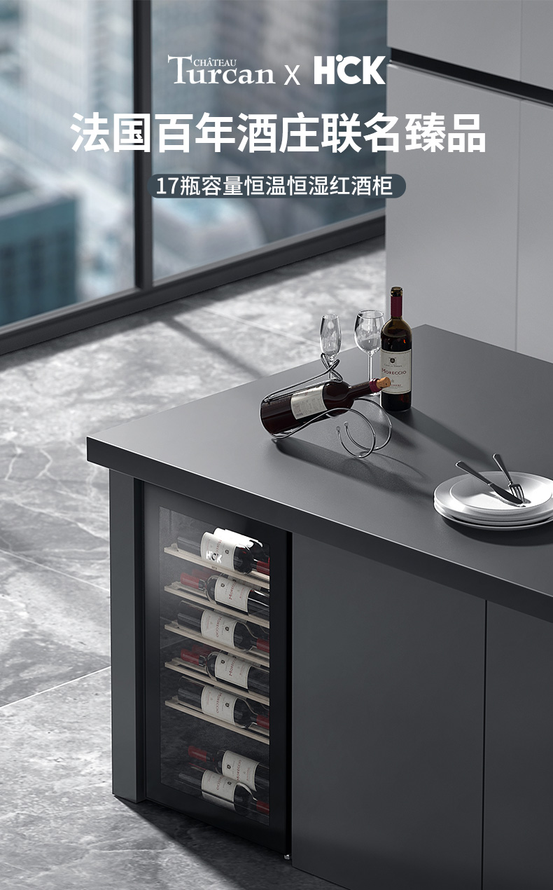 HCK哈士奇SC-62-S红酒柜17瓶恒温嵌入式冷藏小型迷你冰吧冰箱