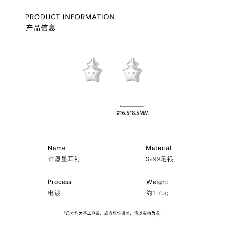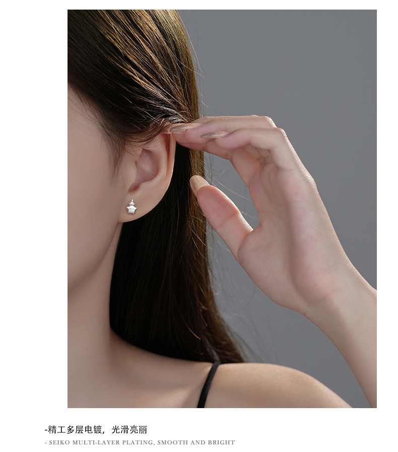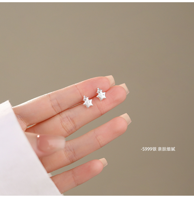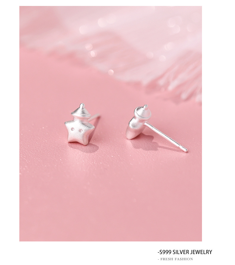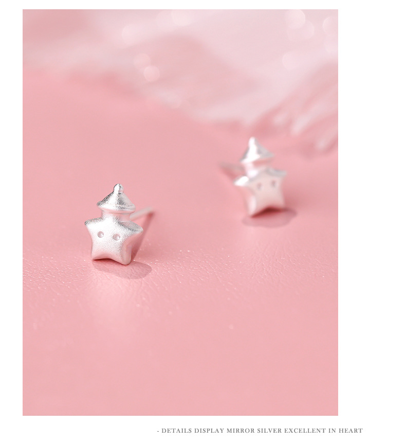 【睡帽星星】S999银可爱童趣磨砂耳饰【YXS-E4291】