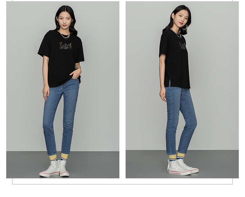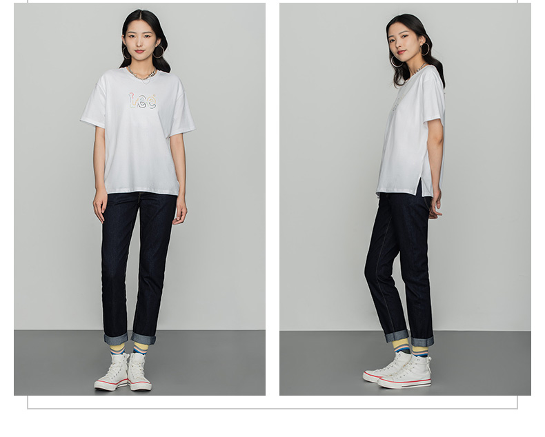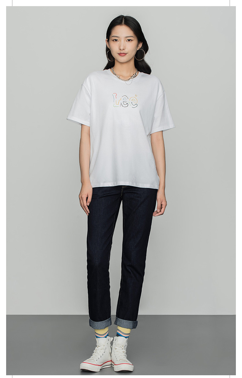 Lee商场同款22春夏新品舒适男友版多色女印花短袖T恤LWT0024613RT