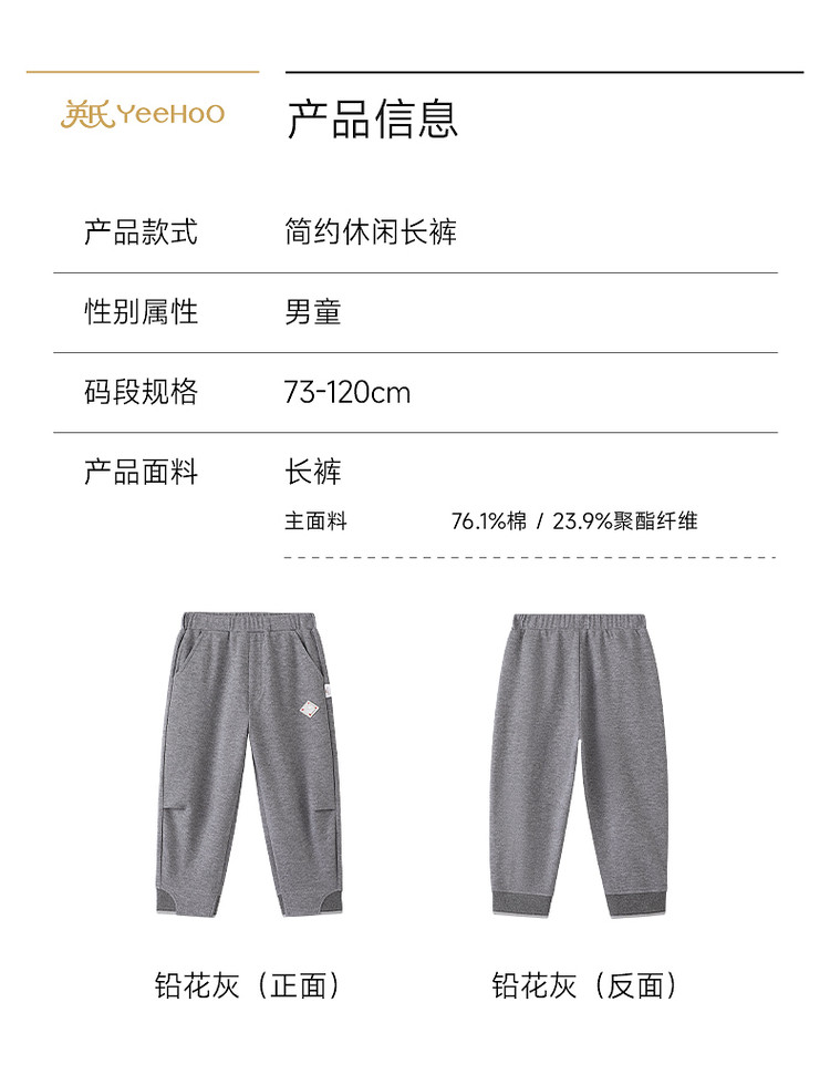 英氏童装儿童长裤春秋男童裤子休闲裤针织裤百搭新款YRKCJ1S004A