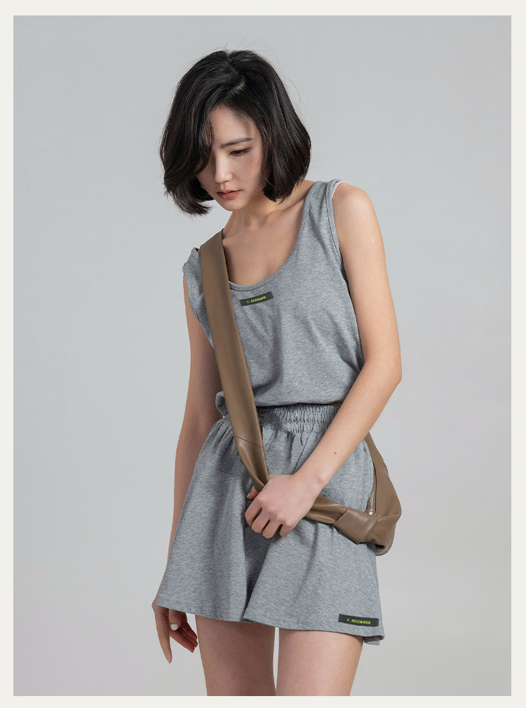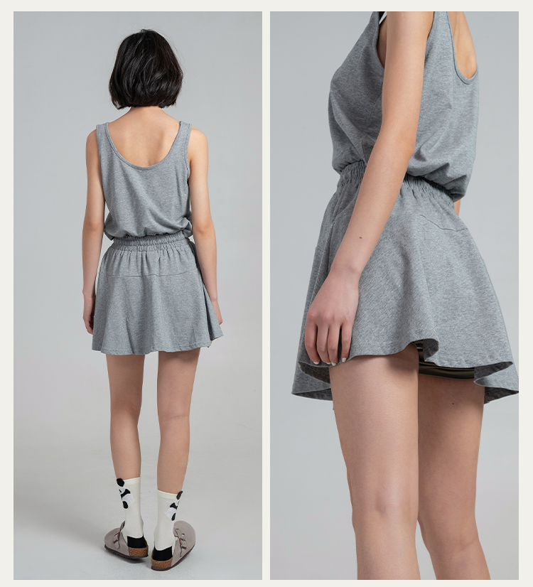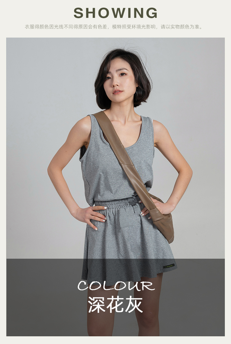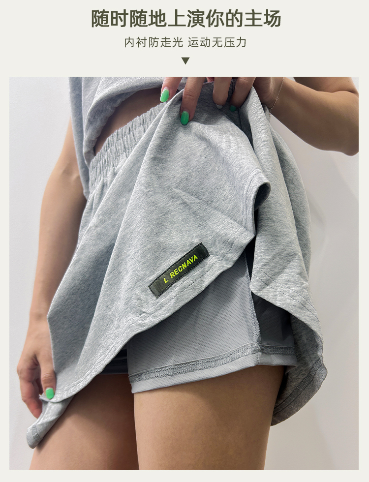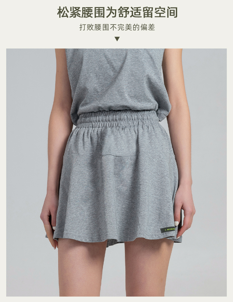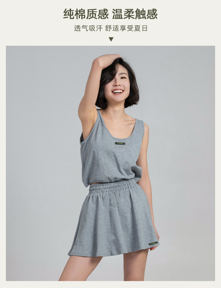 【100%棉】圆领运动休闲短裙套装 透气吸汗上衣+短裙 裤子松紧带内衬 防走光