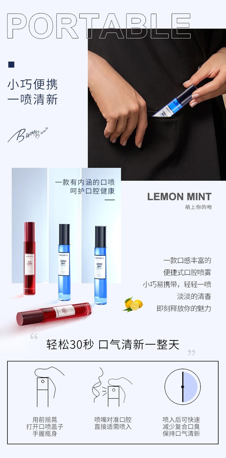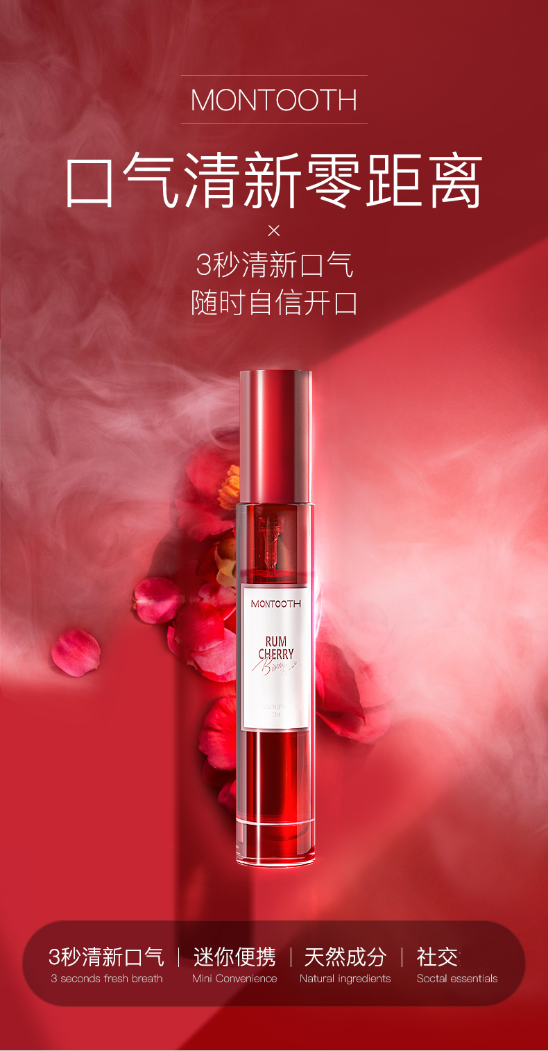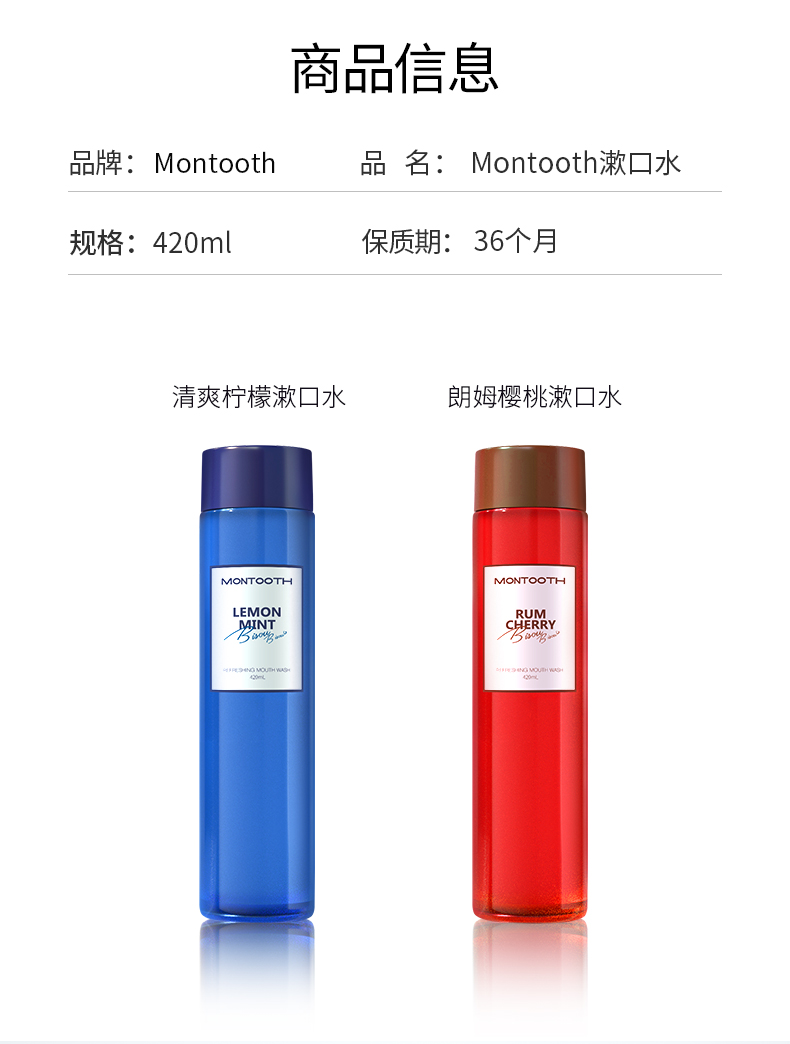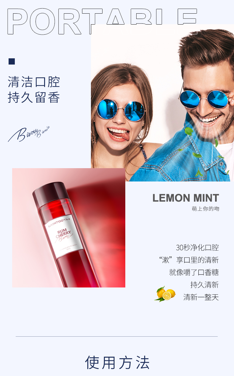 「口气清新零距离」Montooth萌洁齿口腔喷雾/漱口水 柠檬薄荷香型/朗姆樱桃香型 去味健齿 清新口气 口腔护理 温和无刺激 呵护口腔健康