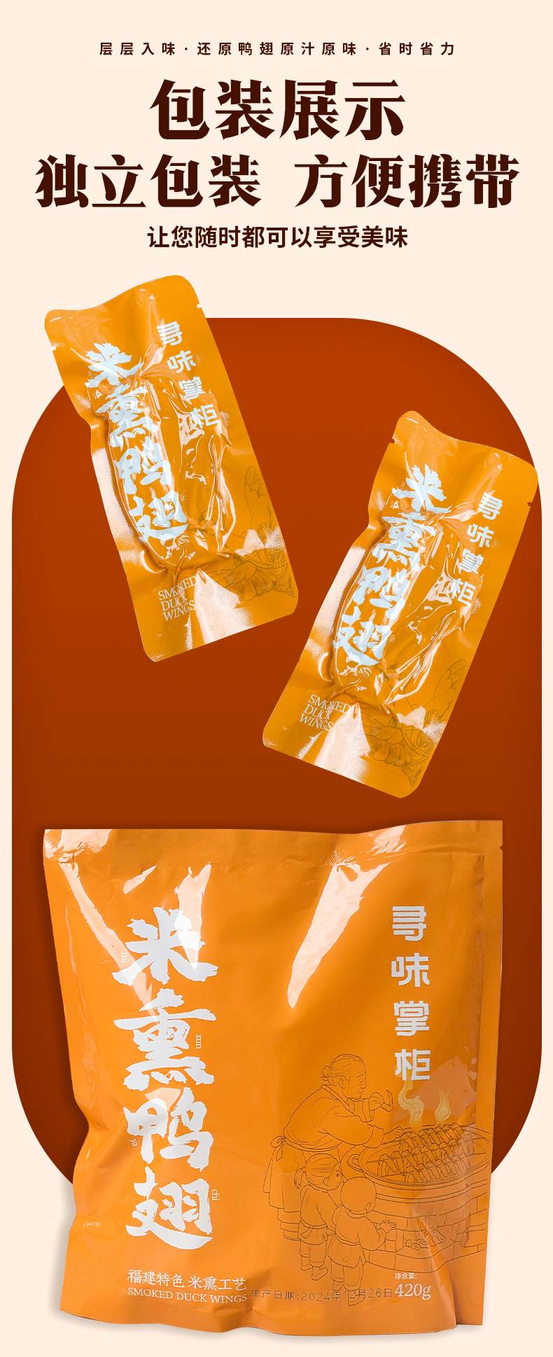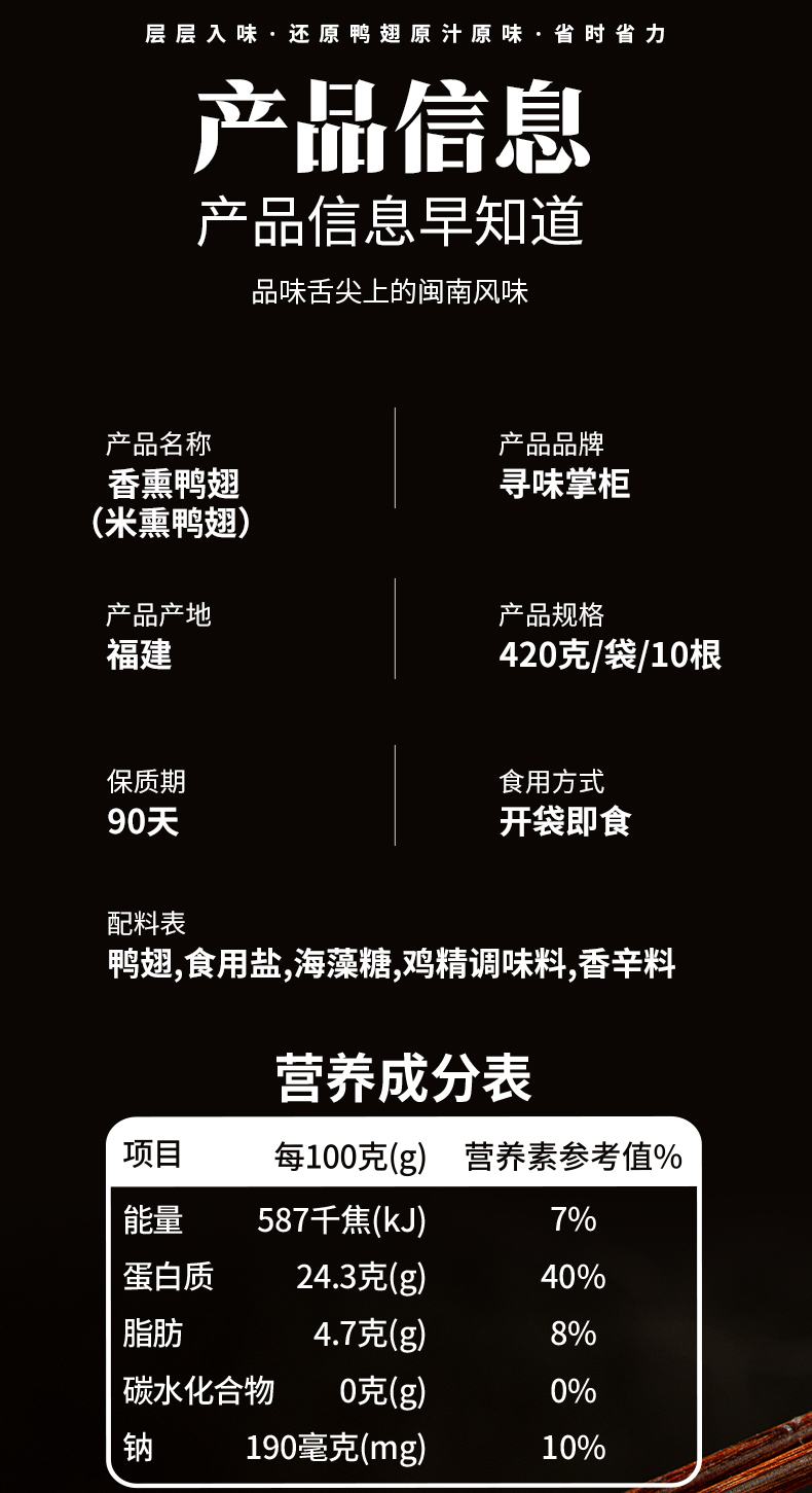 寻味掌柜米熏鸭翅-原味(408g/包 10个独立包装)生产日期: 4月9日
