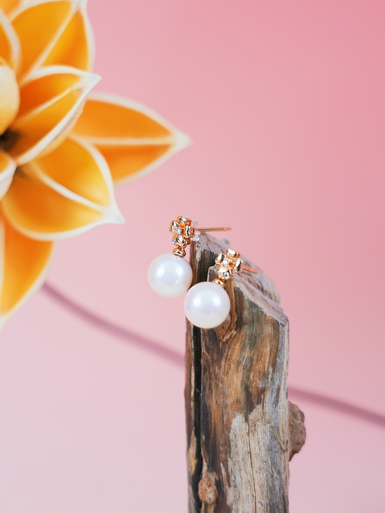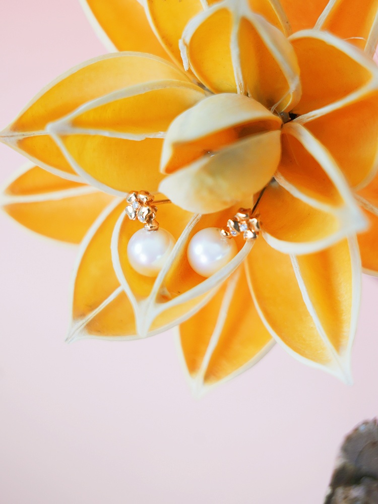 【现货】18K金珍珠耳钉法式优雅小花珍珠耳钉【尺寸8.4mm】 【一物一证书】