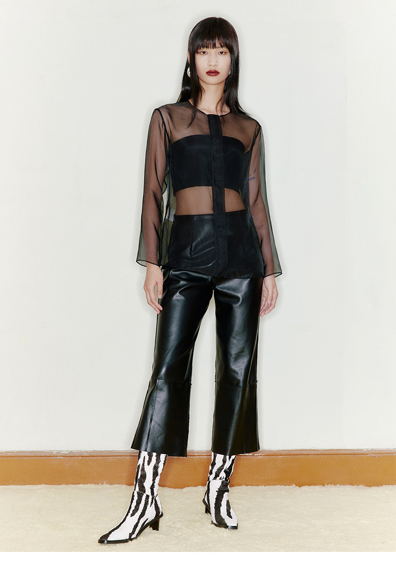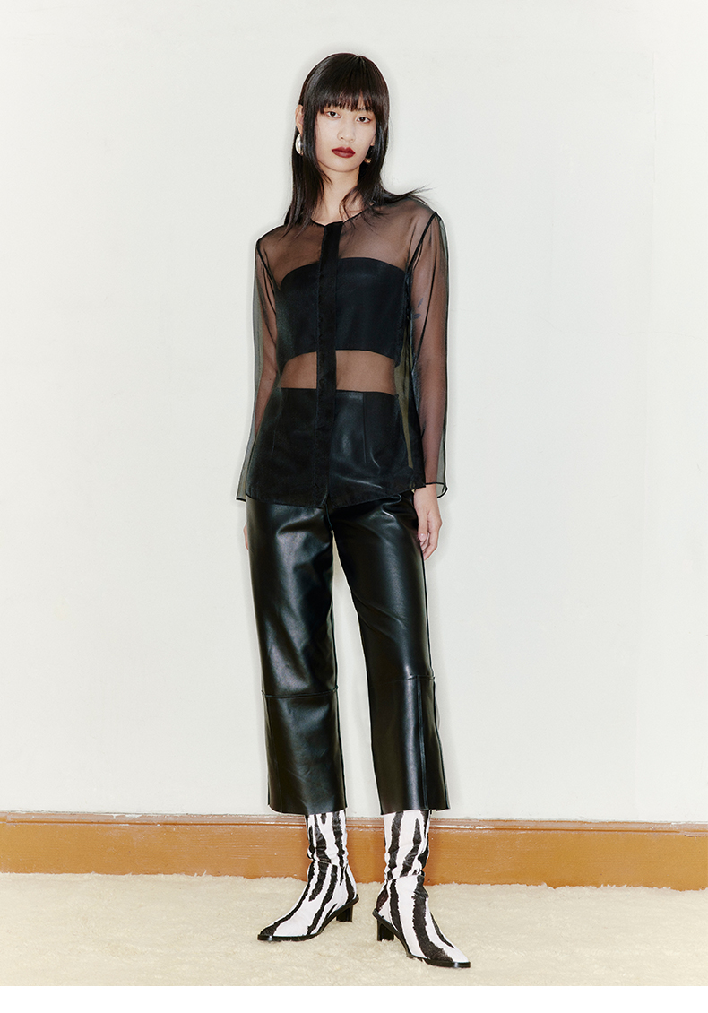 【琉璃夜】开襟拉链薄纱透肤上衣/220035