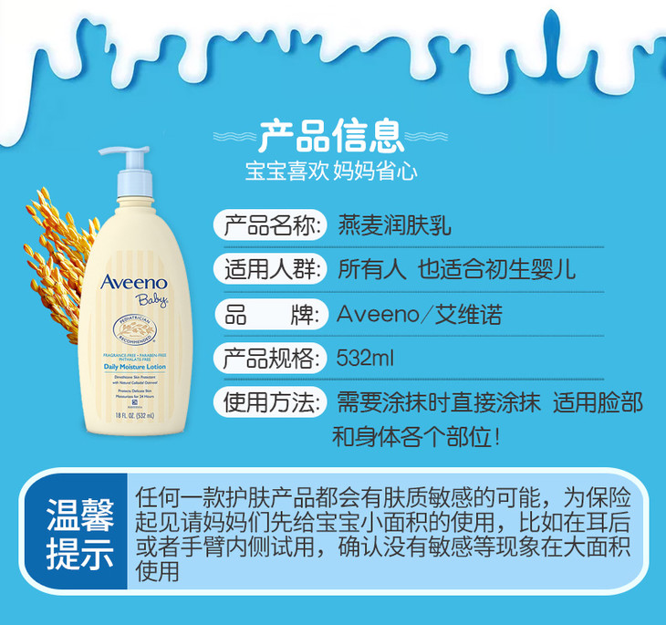 【保税仓】美国Aveeno艾维诺baby燕麦润肤乳 532ml