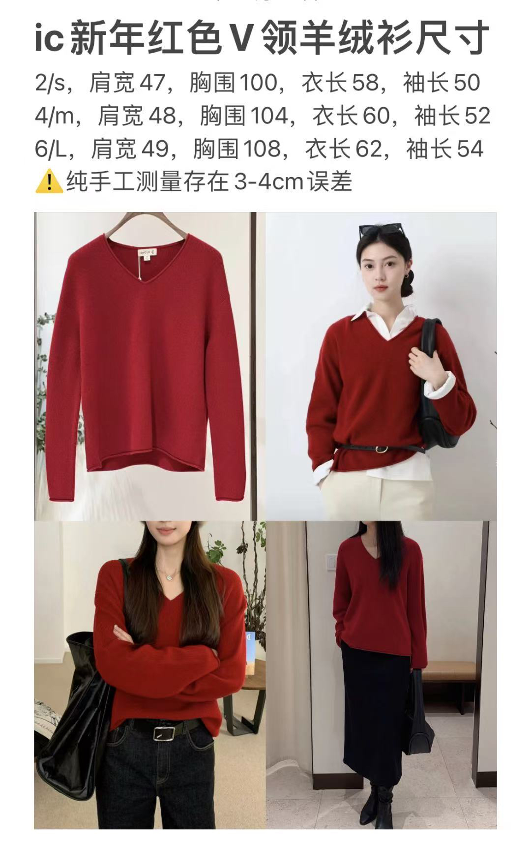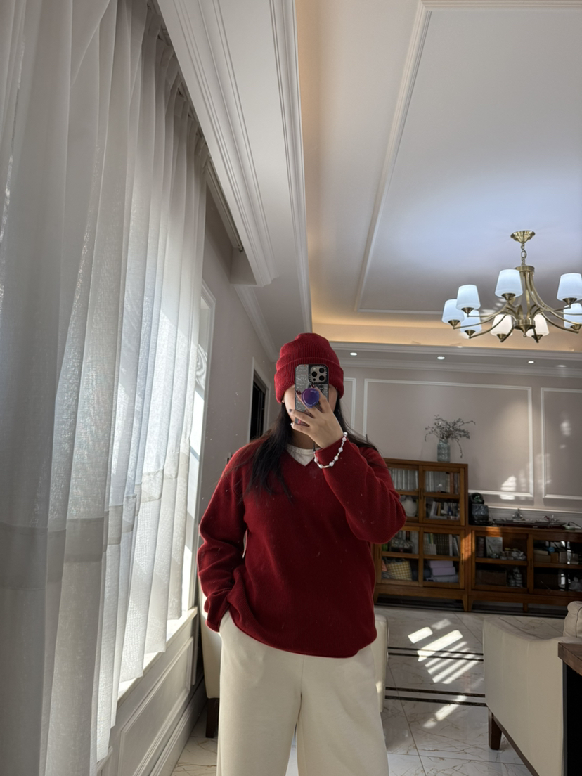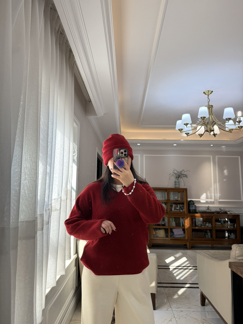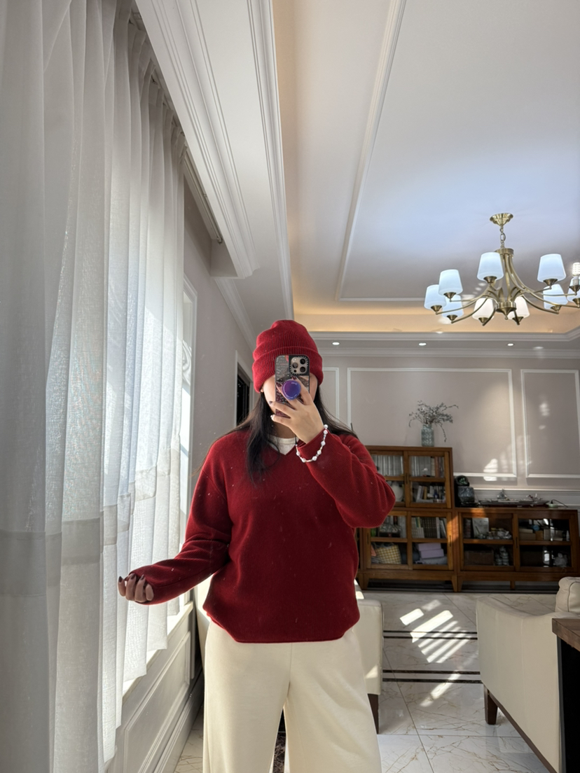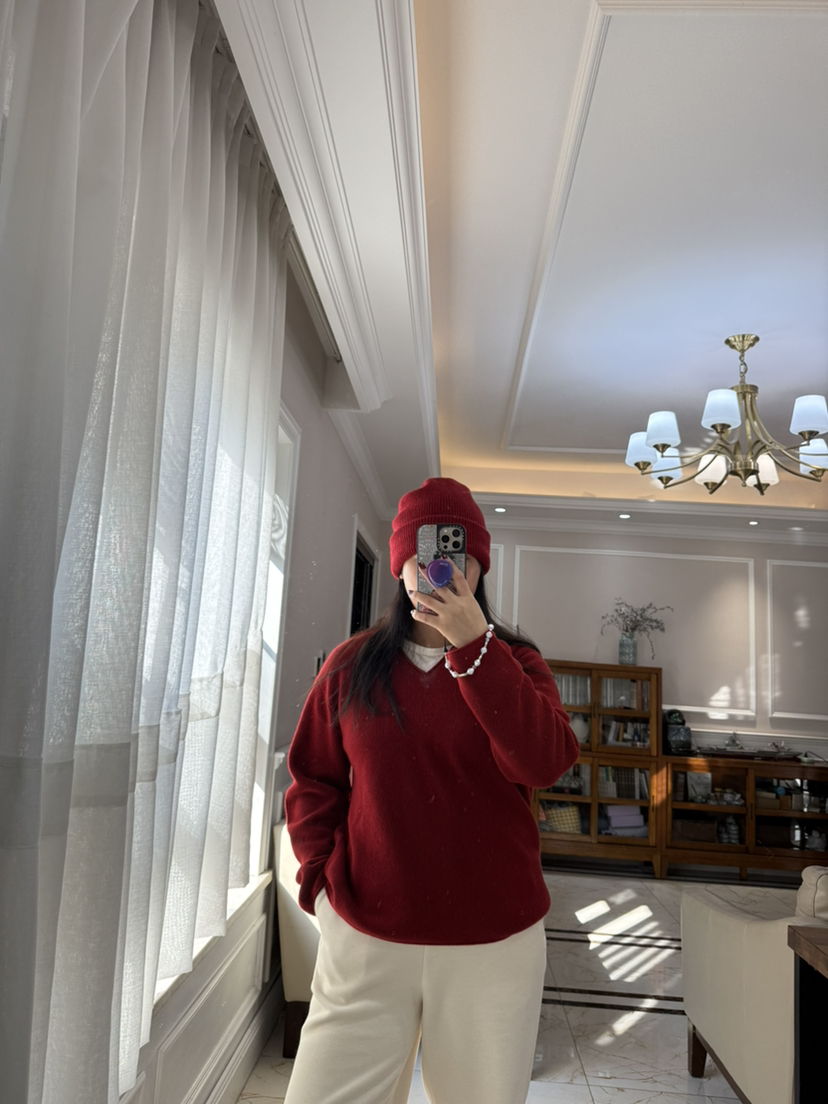 1227-5 渠道圆正 小禾 新年红 V领羊绒针织衫 我穿L
