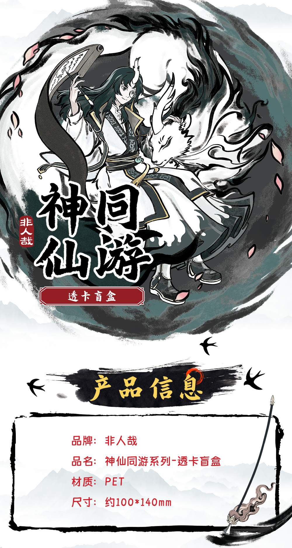 《非人哉官方店》神仙同游系列PET透卡盲盒动漫周边古风水墨收藏卡牌