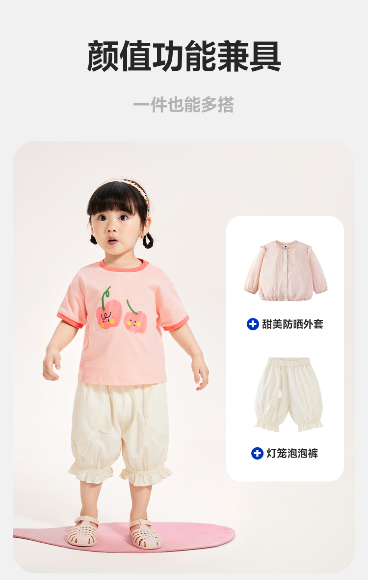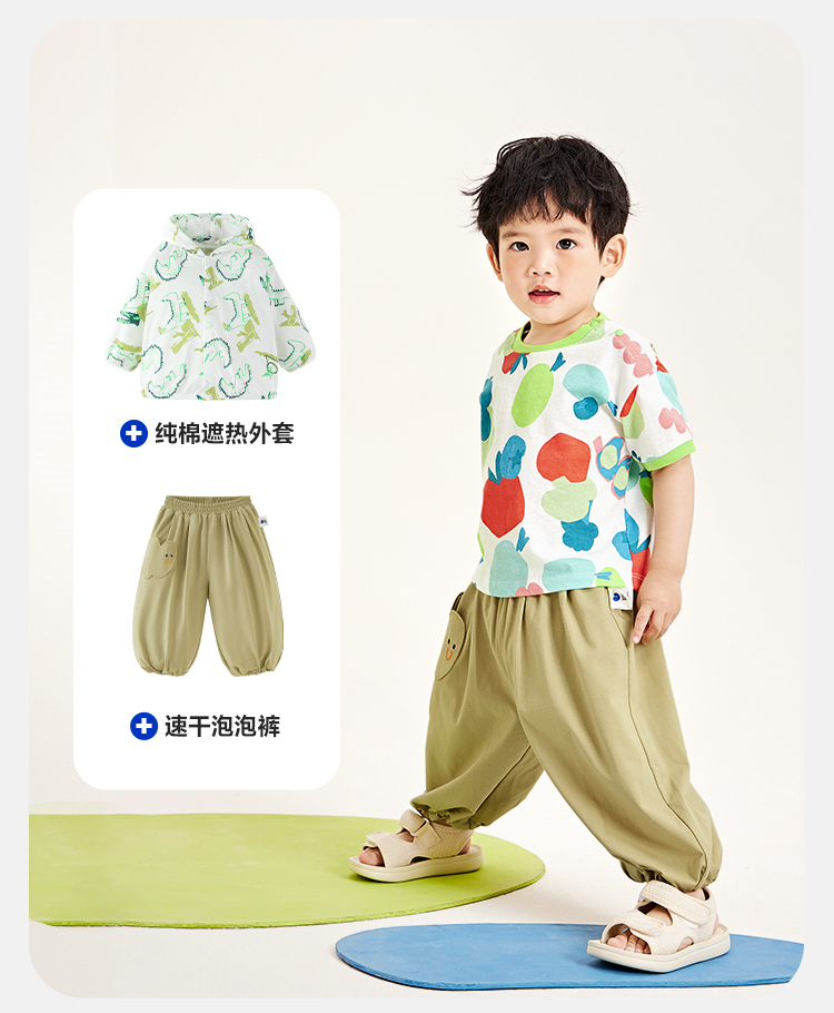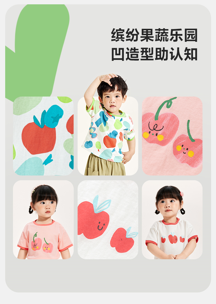 迷你巴拉男童女童短袖T恤速干凉感抑菌萌趣宝宝水果短袖T恤