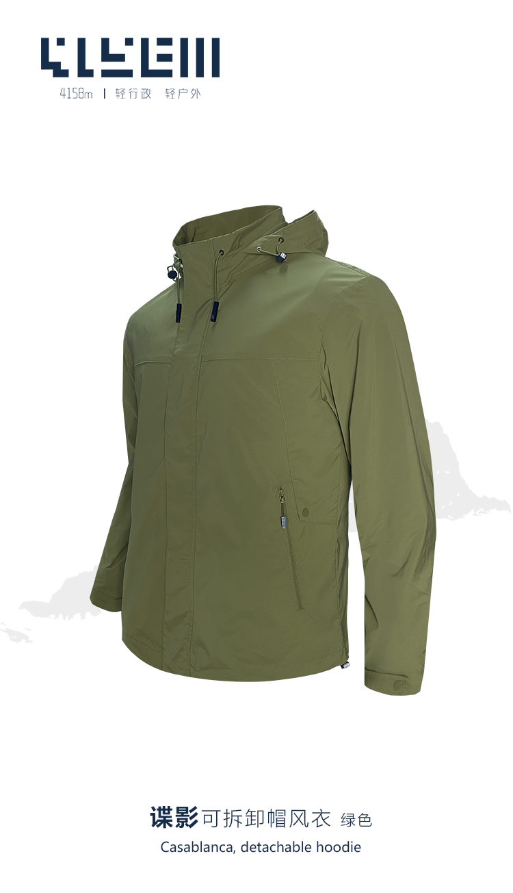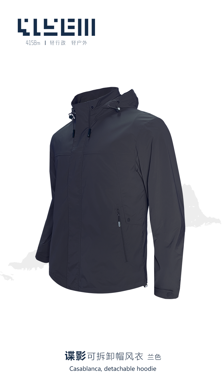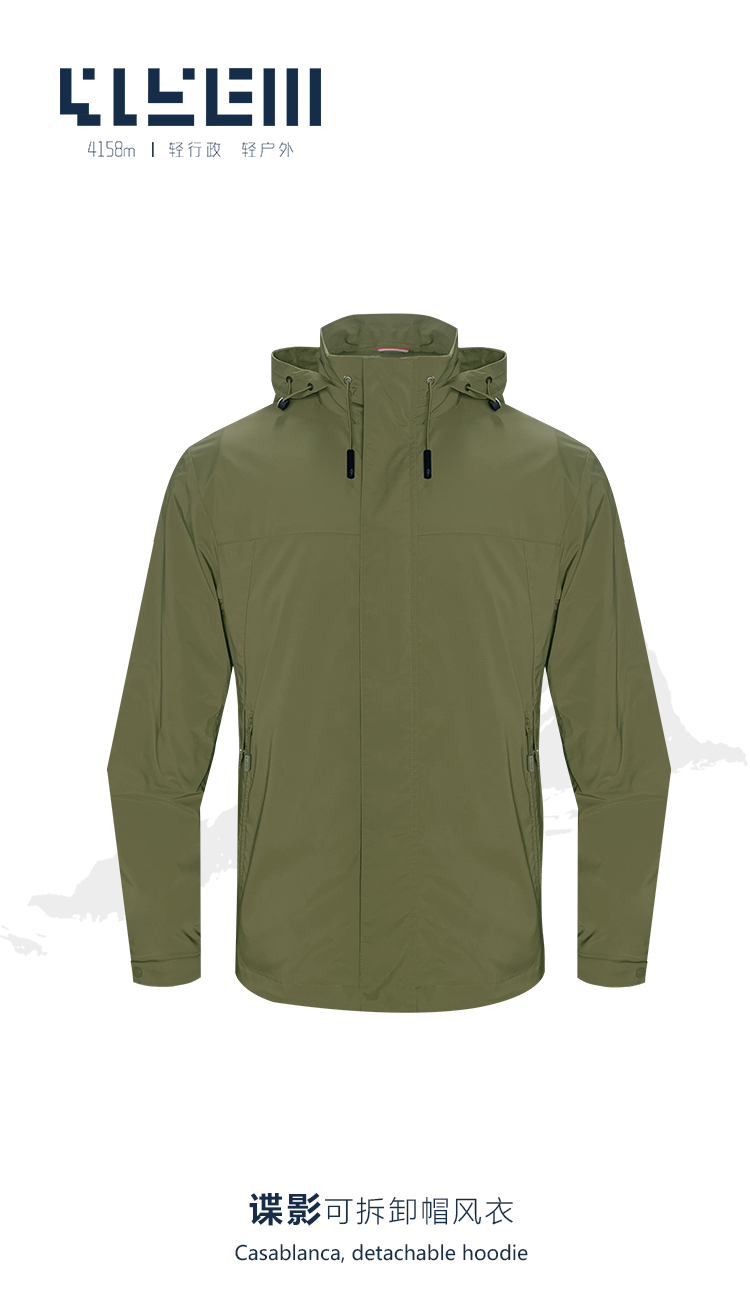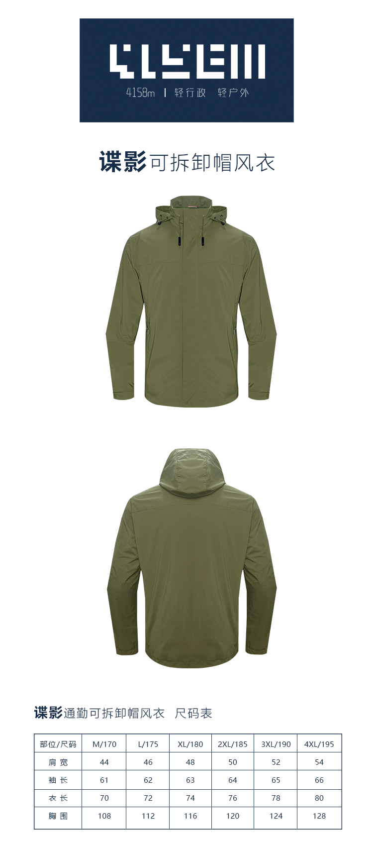 4158m轻户外轻行政 谍影通勤可拆卸帽风衣