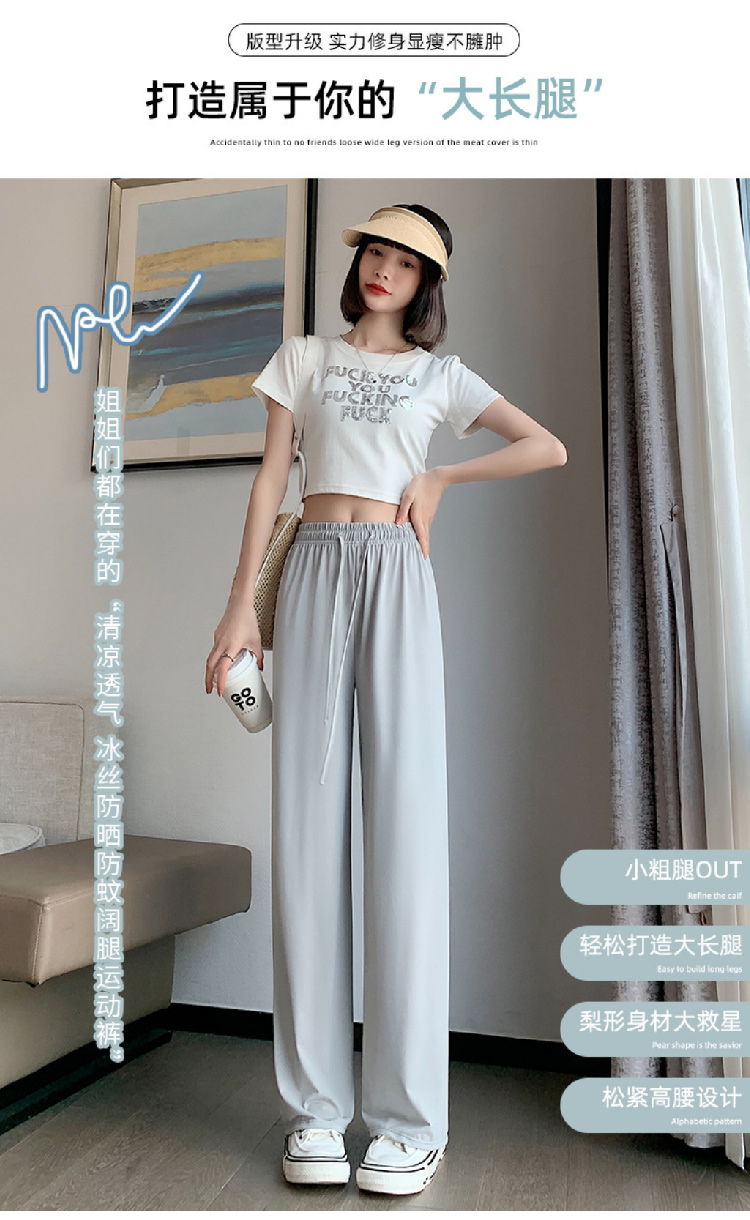 【冰丝夏凉裤】夏季防晒阔腿裤高腰垂感冰丝裤 快干宽松休闲凉感防蚊裤