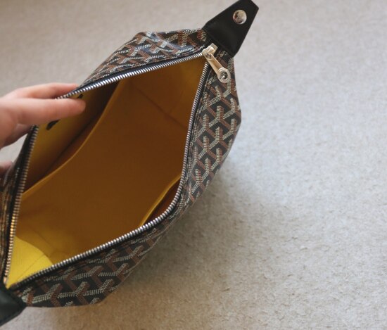 不贴合的设计 也挺人性化 整个黄色衬 只在包口缝线 翻出来洗 也更方便