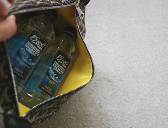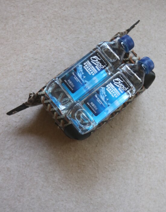 容量非常好 我特意拍了图图 四瓶500mL的矿泉水 还能横着进3个果P手机 哈~