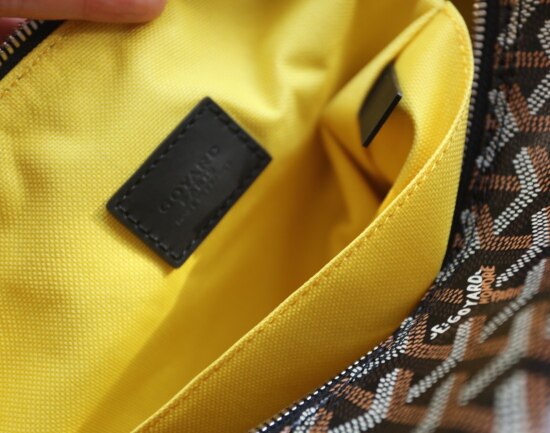 包内 无隔断 亮黄色布衬 与涂层面不贴合 前后各有一个贴袋
