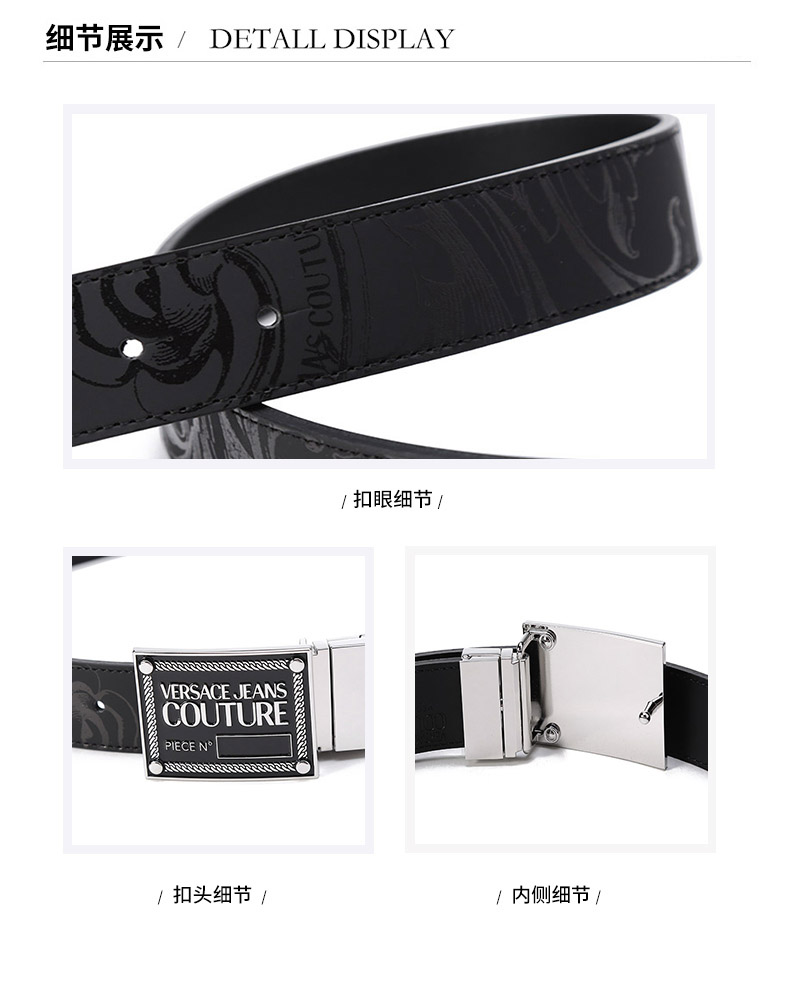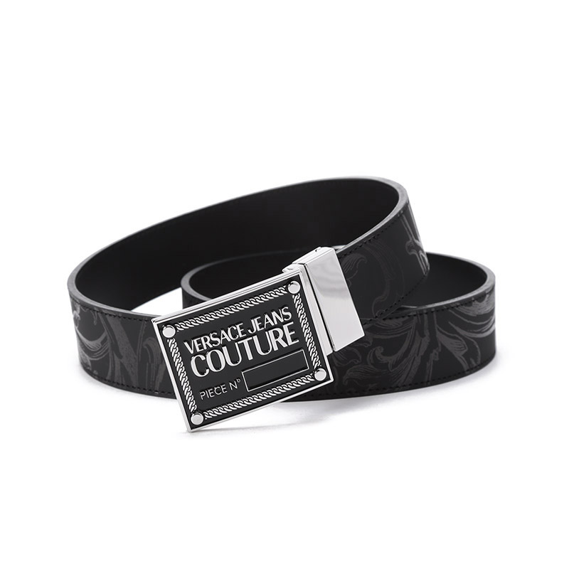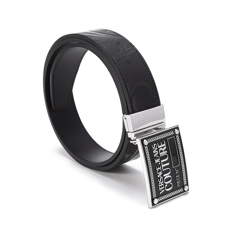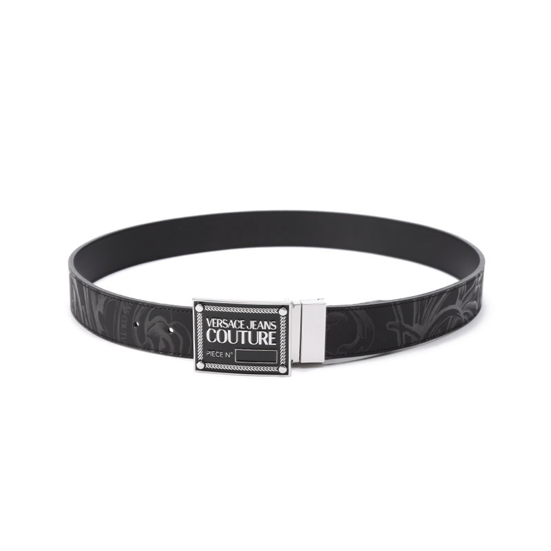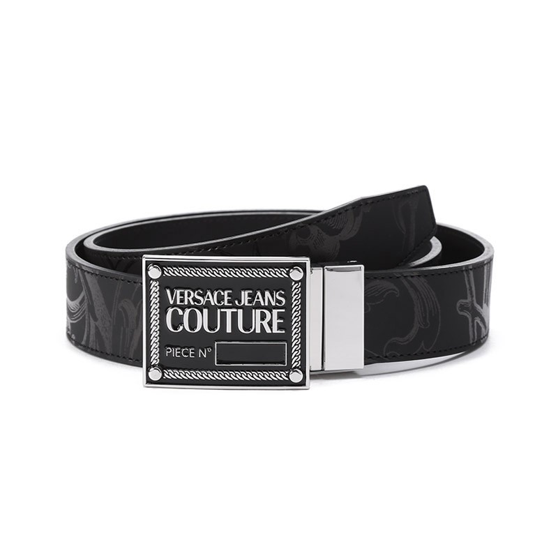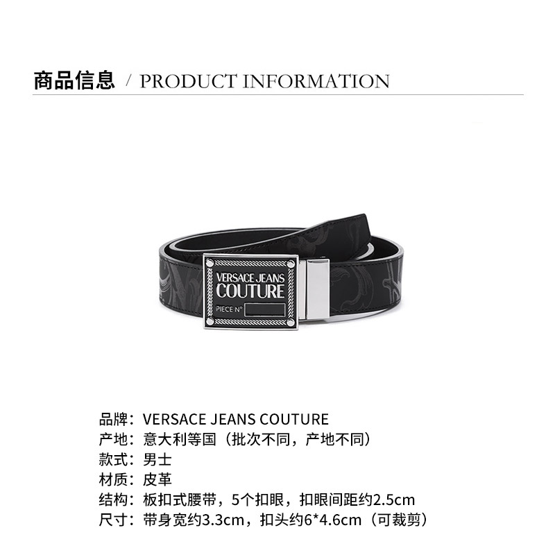 VERSACE JEANS COUTURE范思哲【22春夏新款】男士皮革可裁剪板扣式双面皮带腰带3.3cm黑色 72YA6F01 ZP102